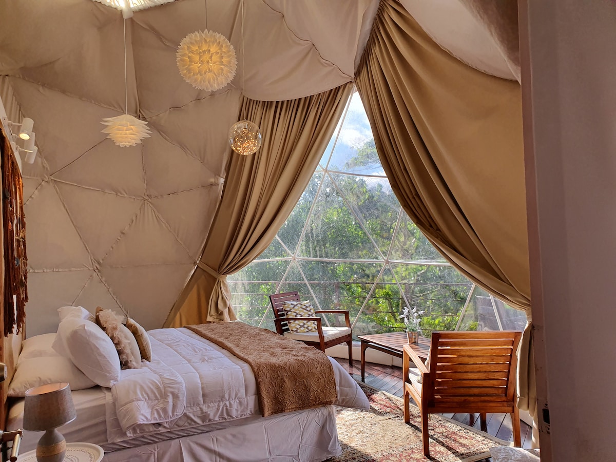 Sumérgete en el exuberante verde de la naturaleza y las asombrosas vistas, transpórtate a una experiencia única alojándote en esta lujosa cúpula glamping perfectamente ubicada a solo 35 minutos del aeropuerto SJO y la ciudad de Alajuela, a 5 minutos de la plantación de café Starbucks Hacienda Alsacia y a minutos de los jardines de las cascadas de La Paz y el volcán Poas. Esta cúpula única está equipada con todo lo necesario, desde una cama tamaño king hasta duchas calientes, cocina americana, terraza y mucho más.
