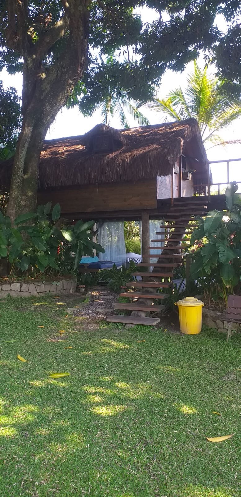 Un bungalow construido artísticamente en cada detalle... bañera abierta al bosque con techo de cristal dan la sensación de estar inmerso en la naturaleza, con una higuera centenaria al frente y muchas aves... íntimo y acogedor en conexión con la Naturaleza en contacto con esta zona de reserva de la Mata Atlántica. La otra ducha de hidromasaje está en la terraza abierta al bosque y es deliciosa de día o de noche con cielo estrellado y luna.