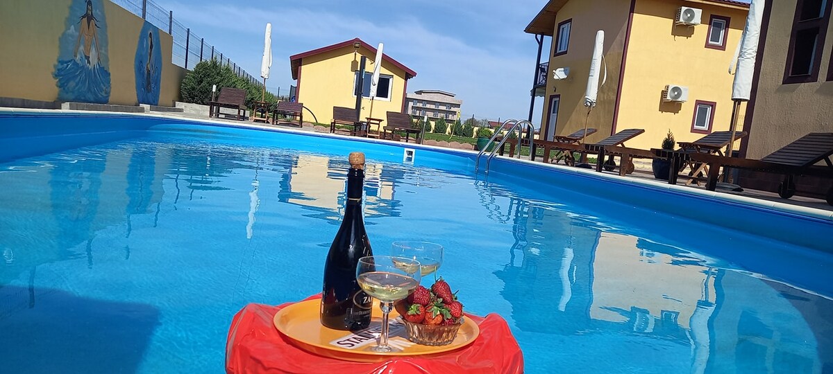 Piscină privată deschisa 24/24 Pool Bar dotat cu pahare si minibar Boxe performante si lumini de seara Duș solar 60°apa calda Grădină generoasa Camere spațioase cu chicineta ,aer conditionat /pompa de căldură Sauna pe infrarosu Acces Non Stop Sala Fitness Acces Non Stop Gratar iluminat echipat cu ustensile Bucatarie spatioasa echipata Lemne si condimente din partea casei Baldachin ,hamac Karaoke videoproiector cu ecran de proiectie Chitara ,Narghilea, Cafea Lavazza profesionala.