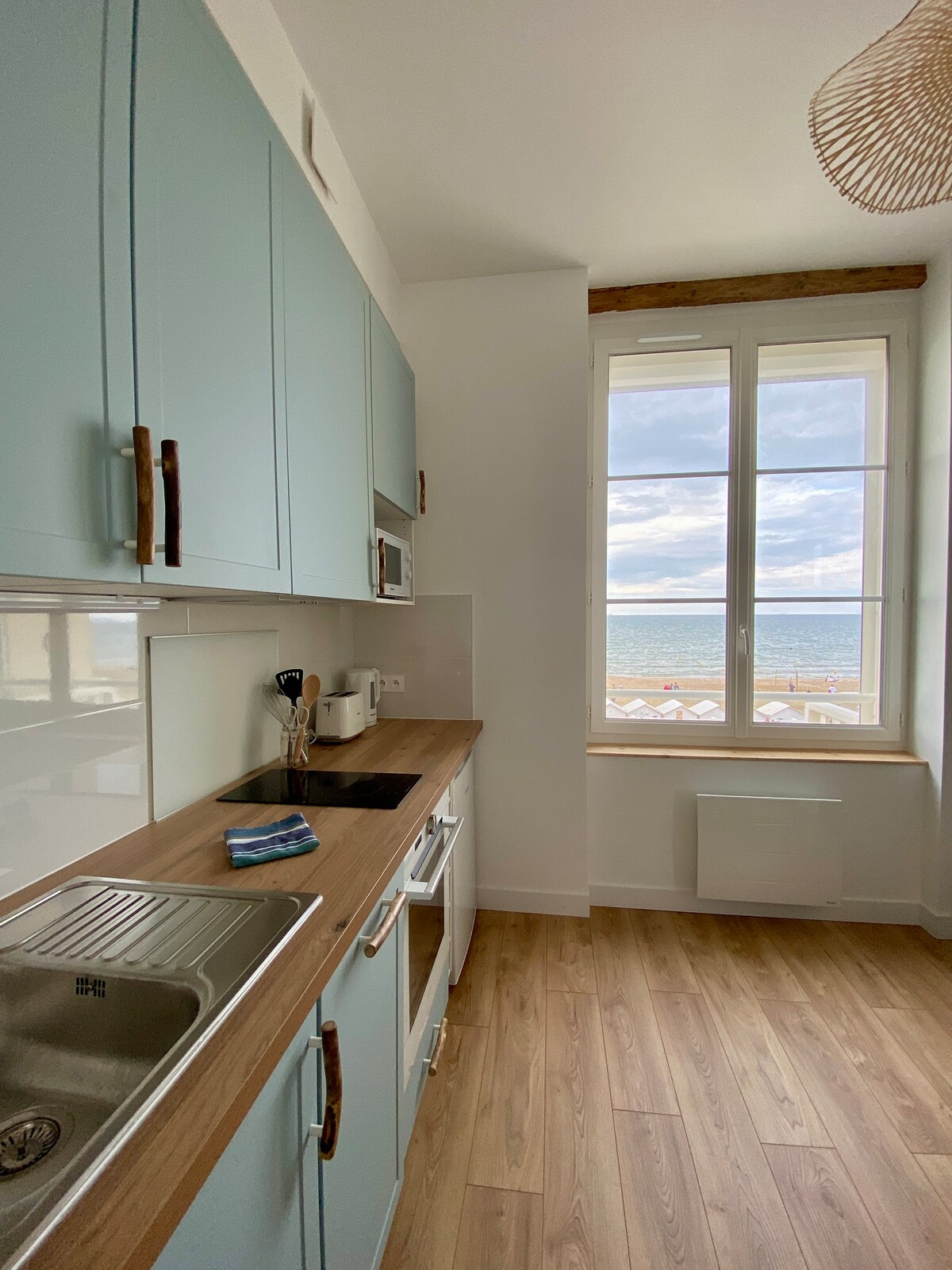 ¡Venga a relajarse en este magnífico apartamento de 25 m2, con vistas al mar y decoración de «cabaña de playa»! Completamente renovado en verano de 2024, se encuentra en primera línea de playa, a 2 pasos del centro de la ciudad de Villers-sur-Mer: ideal para disfrutar de la playa, la ciudad y sus actividades. - Se proporcionan sábanas y toallas - Wifi y TV conectada - 1 habitación pequeña con cama de 140x190 cm - Salón con sofá cama muy cómodo de 140 cm x 190 cm - Cocina equipada - Entrada con zona de escritorio