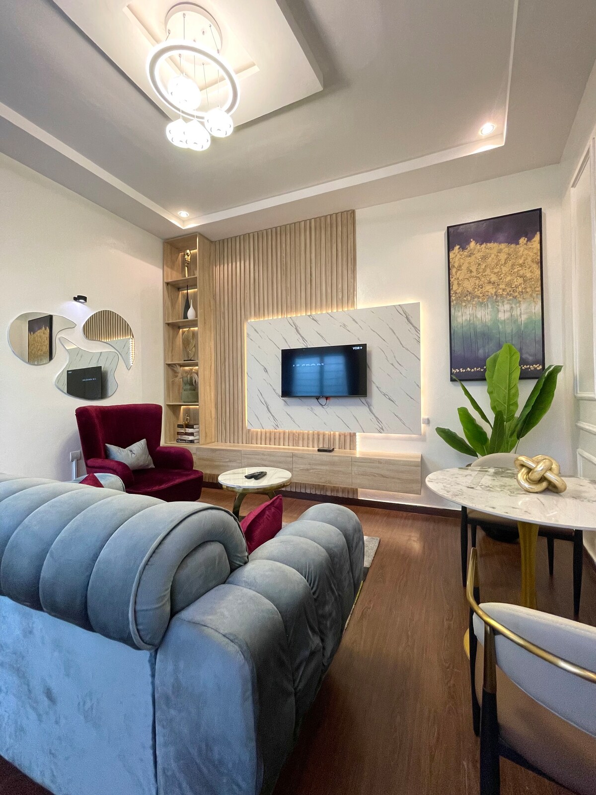 Situado a 5 minutos del aeropuerto y en el centro de la ciudad, este apartamento muy grande incluye un dormitorio salón sanitario totalmente amueblado y muy lujoso. tiene una suscripción de canal sat, así como un acceso a Internet de alta velocidad. Cocina: totalmente equipada