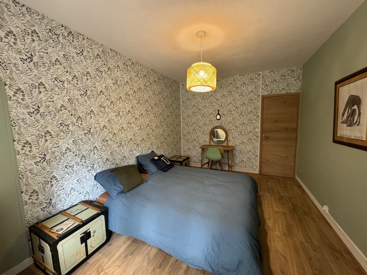 Casa rural independiente de una sola planta, tranquila, cerca de todos los comercios, en Gien. Ideal para una estancia familiar. Gran sala de estar con cocina abierta, totalmente equipada con aire acondicionado ,1 baño ,1 aseo ,3 dormitorios con camas de 140x190 cm ( ATENCIÓN SÁBANAS/TOALLAS OPCIONALES), sofá cama .Jardín vallado delante y detrás de la casa . Posibilidad de aparcar los vehículos en el patio. Atención, consulte la información sobre los gastos de limpieza y la opción de sábanas/toallas.