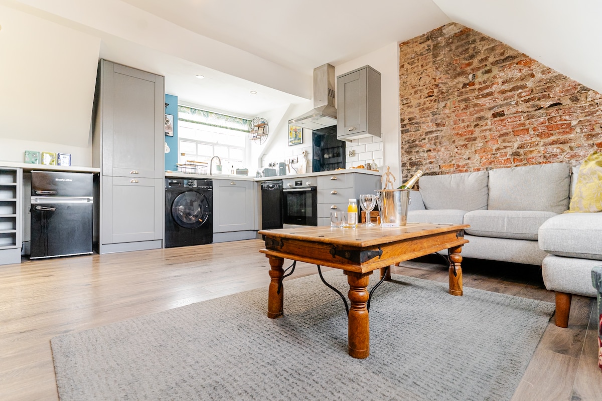 The Eaves es un elegante apartamento de un dormitorio en el edificio georgiano reformado con simpatía en Horsemarket, en el centro de Darlington. También hay un segundo dormitorio pequeño con sofá cama. El apartamento tiene vistas a High Row y al mercado cubierto victoriano con una amplia variedad de servicios inmediatamente a mano. El teatro Hippodrome está a 5 minutos a pie y la estación de tren a 10 minutos a pie. Darlington es una vibrante ciudad comercial y un punto de partida perfecto para explorar la naturaleza circundante.