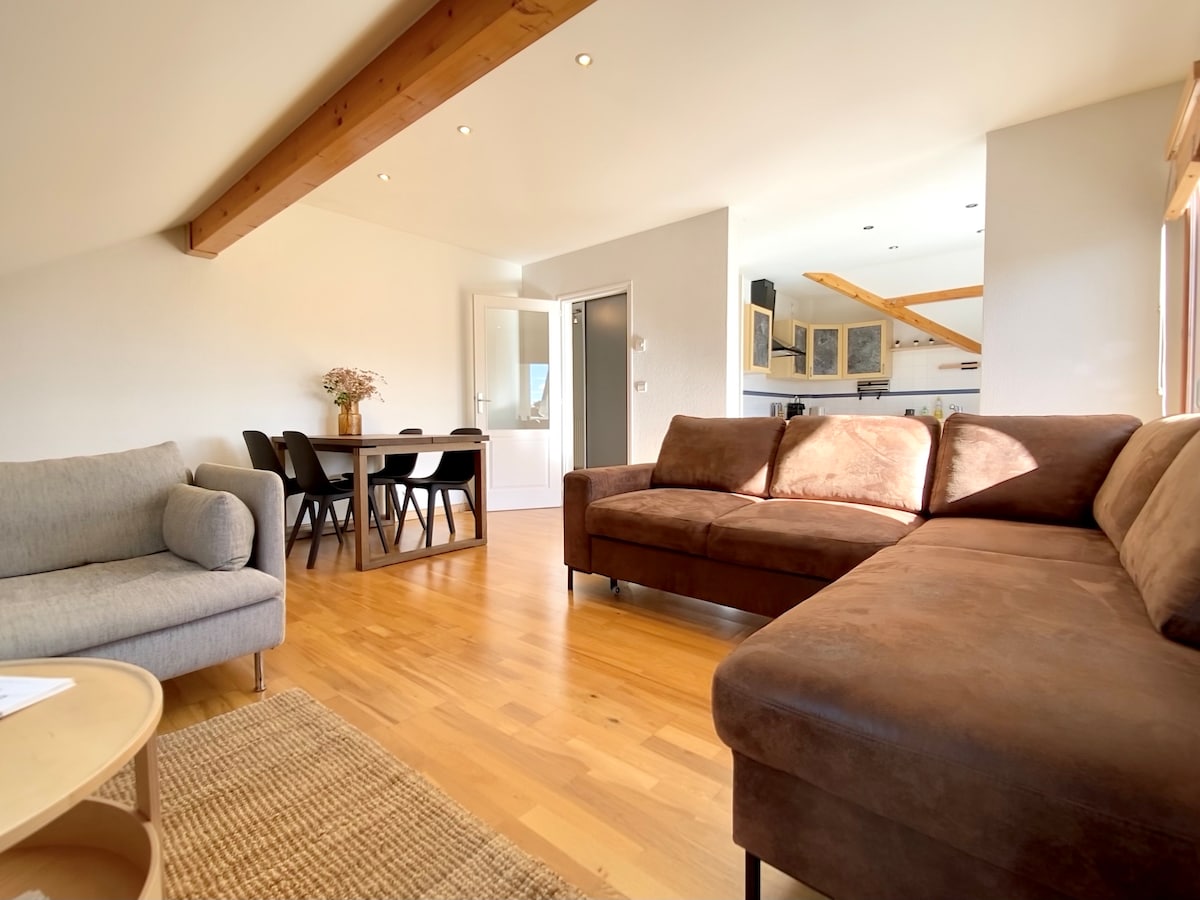 Bienvenue dans ce charmant appartement lumineux de 80 m2 situé à 2 minutes à pieds de la gare de Nyon. L’emplacement offre une accessibilité optimale , vous pourrez rejoindre en train Genève en 20' et Lausanne en 30'. Que vous soyez en vacances ou en déplacement professionnel, l'appartement est l'endroit idéal pour vous sentir chez vous, grâce son ambiance chaleureuse et accueillante. Vous trouverez tout le confort nécessaire. Le quartier offre une multitude de commodités à proximité.