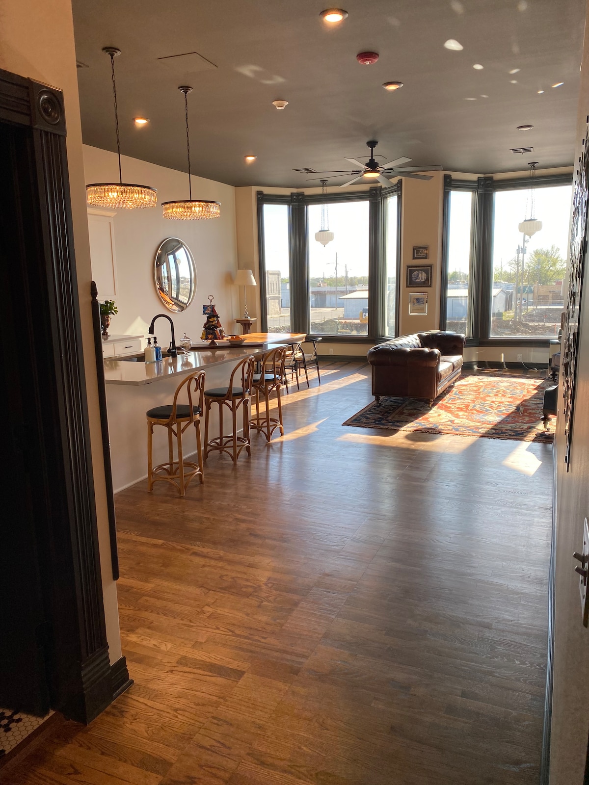 This luxury unit is the perfect space for you (and/or your group) to gather for your next stay in beautiful Downtown Pittsburg. Spacious, fully outfitted with all kitchenwares, and overlooking a beautiful greenspace, stylish mens store and barbershop, and a speakeasy (shhh!), this is a destination location that you and/or your group will love. Ask us about our add-on services for bridal/groomsman parties as well!