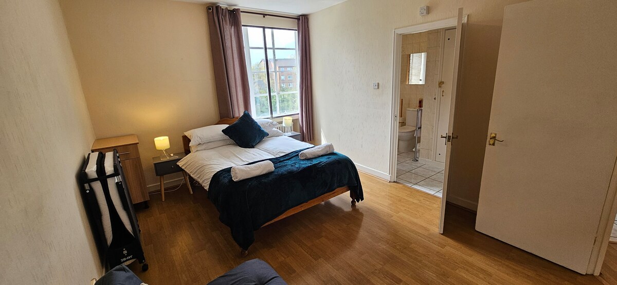 Moderno apartamento de 2 dormitorios y 2 baños con balcón grande, calefacción por suelo radiante, wifi súper rápido y espacio para hasta 6 huéspedes más bebés en cunas. Sala de estar de diseño abierto con sofá cama, cocina totalmente equipada y un gran balcón con vistas a Wembley. Perfecto para familias, viajeros de negocios y estancias más largas, con fácil acceso a la línea Jubilee para viajar rápidamente por Londres. Ubicado en el vibrante Willesden Green, cerca de West Hampstead, Kilburn y Wembley, con cafés, parques, tiendas y mercados locales cerca.