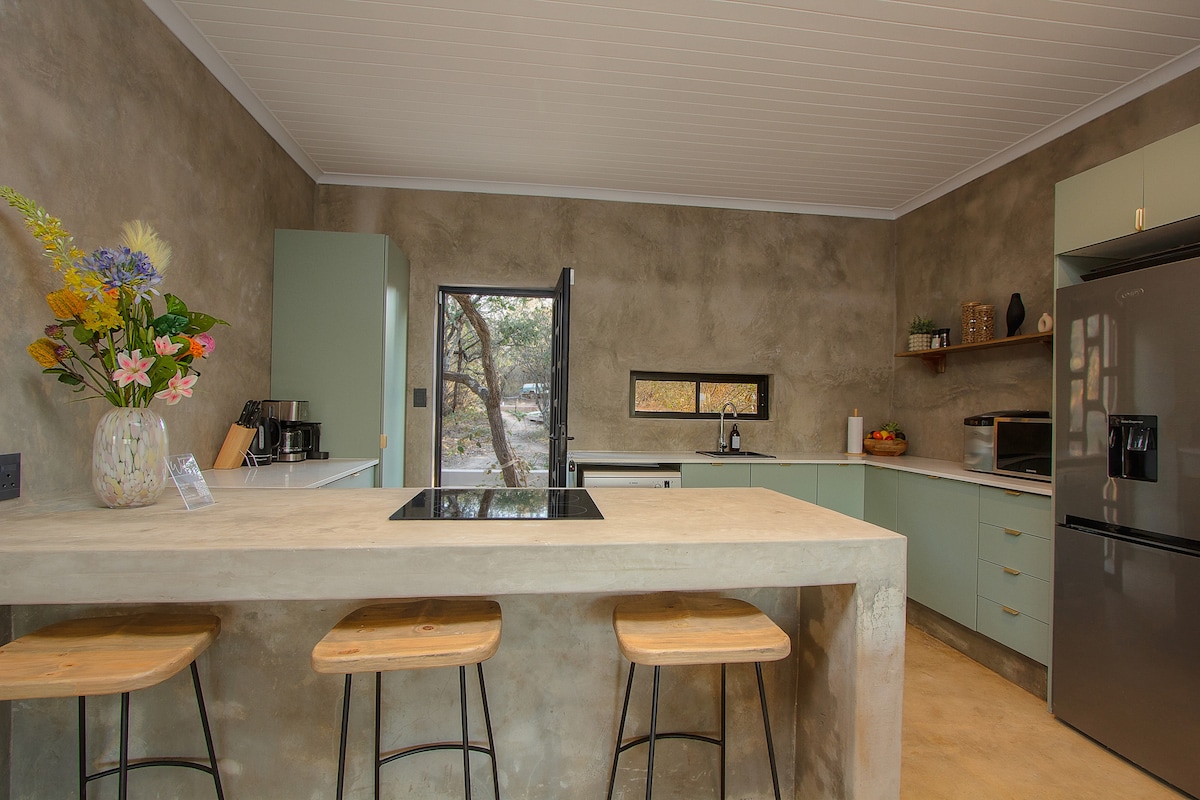 Birdsong es una casa privada, independiente y con energía solar en una reserva natural que colinda con el Parque Nacional Kruger. Relájate en el salón exterior de la planta baja con piscina climatizada mientras las cebras, kudús y muchos otros pasan a visitarte. Contempla la puesta del sol desde la hamaca del patio superior. Haz ejercicio en el espacio del gimnasio. Y si no puedes escapar del trabajo, ¡hay una gran mesa arriba con un hermoso fondo de vídeo! Birdsong está a solo 15 minutos de la puerta del Puente del Cocodrilo de Kruger.