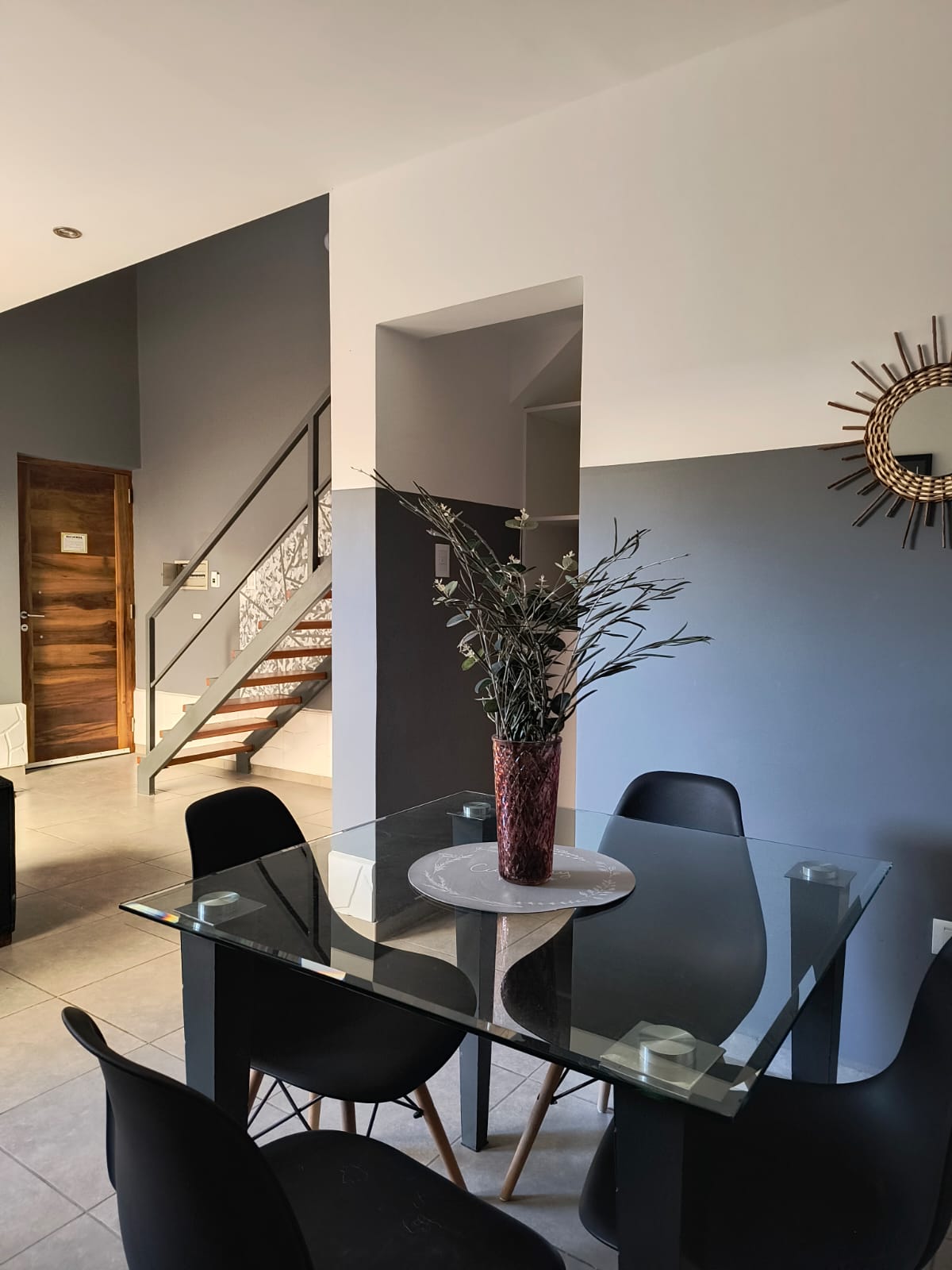 Disfruta con familia y amigos en este tranquilo condominio privado Departamento con ingreso automatizado y estacionamiento techado para 4 vehículos Habitaciones con vistas a la pileta y viñedos Aire acondicionado frio-calor y estufas a gas, smart-tv, WI-FI. Salon con churrasquera, pileta, areas verdes , recepcion y regaleria Amplio espacio dentro de complejo privado de cuatro departamentos ubicado a minutos de las principales bodegas de la zona.