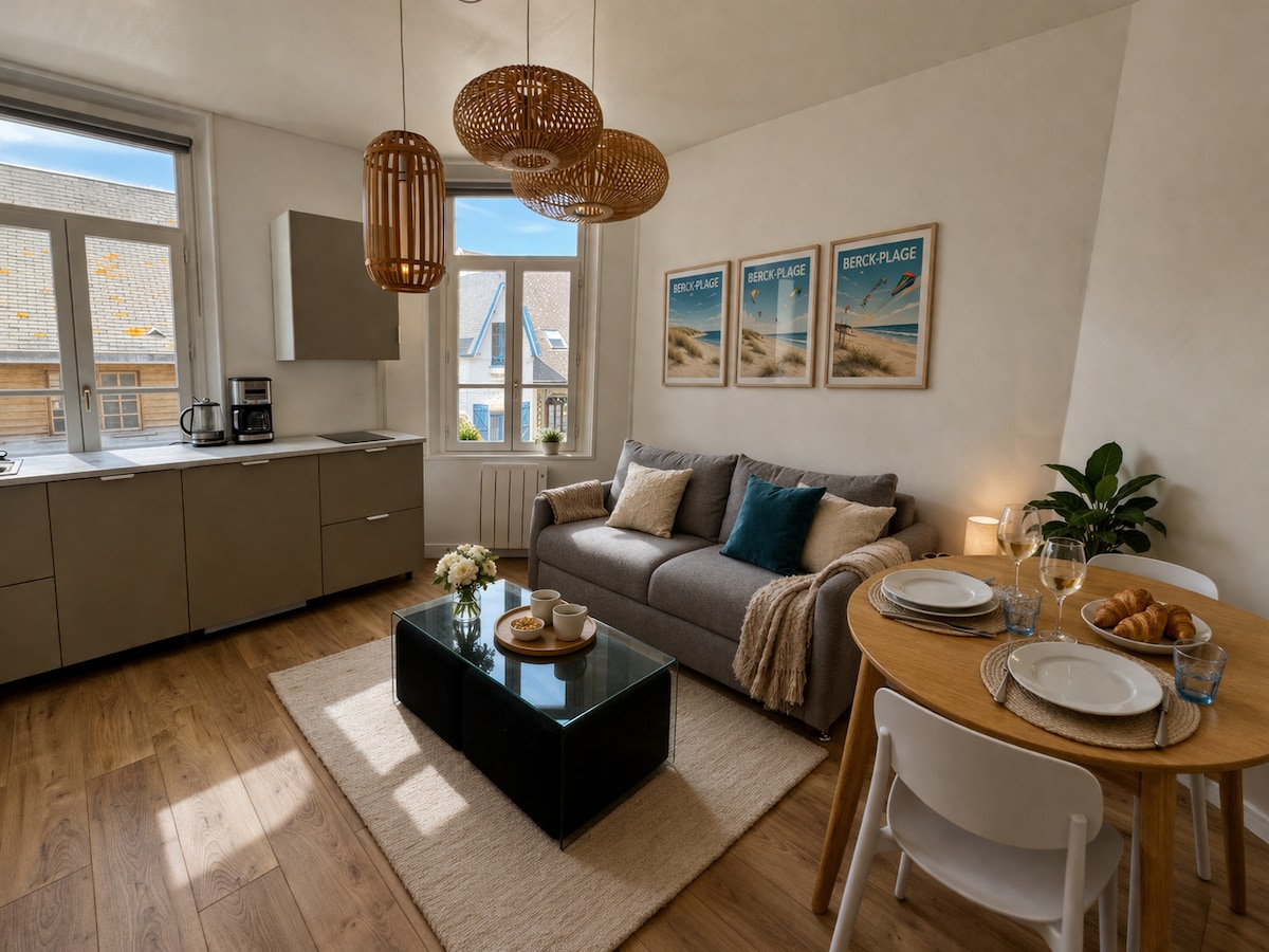Acogedor y luminoso estudio con balcón situado en Stella-Plage, cerca de Le Touquet (a 10 minutos en coche). Idealmente situado a 100 metros de la playa, está en el primer piso de un pequeño complejo de apartamentos tranquilo y disfruta de un aparcamiento privado en la parte trasera y de un local para bicicletas. El alojamiento está equipado y tiene un sofá cama que se acaba de cambiar en abril de 2025, una mesa desplegable, una cocina equipada, una televisión, wifi, una persiana enrollable y una calefacción inteligente. Se admiten mascotas (perros/gatos).