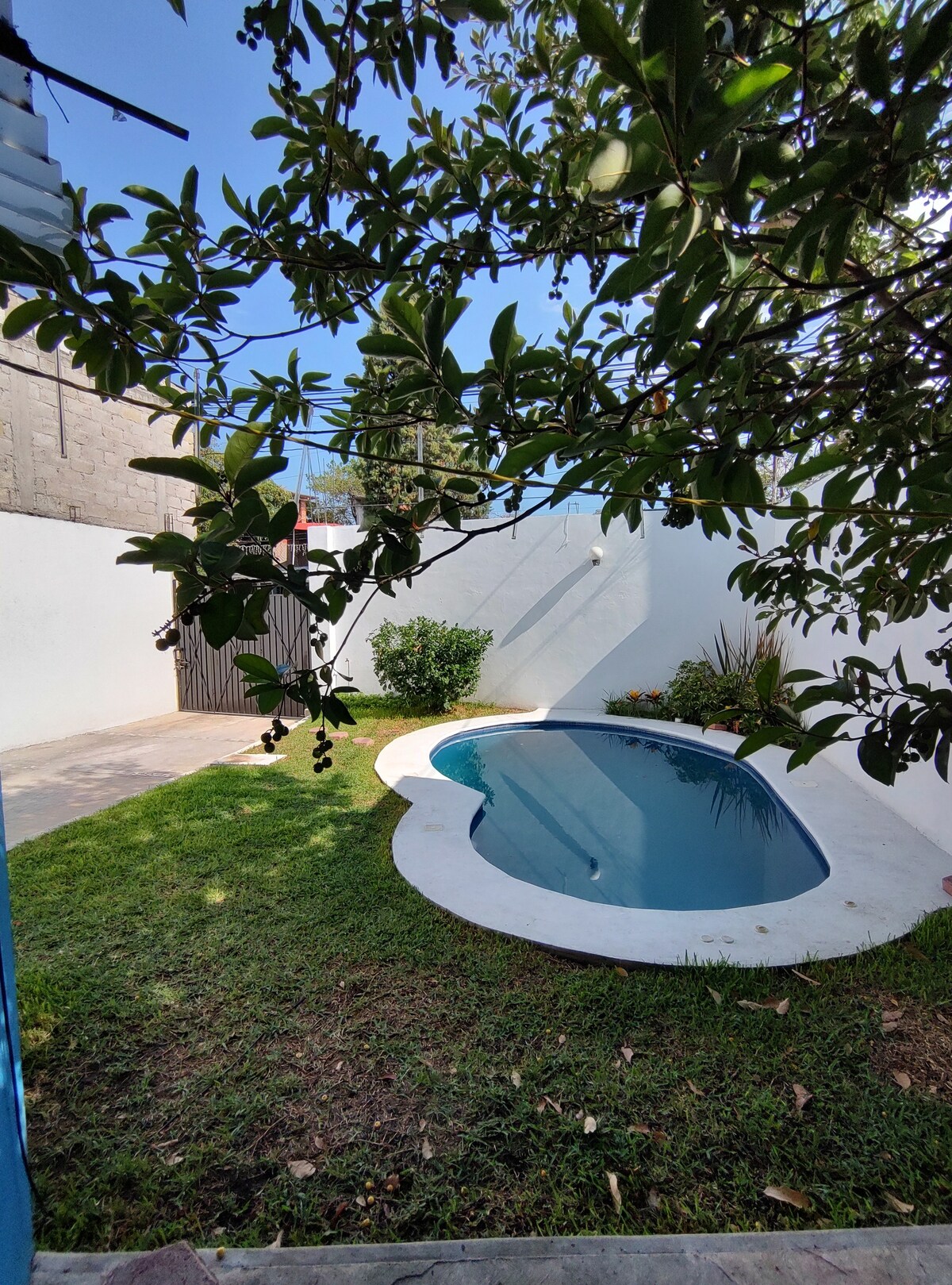 Casa privada con alberca. Cocina con horno de microondas, estufa sin limite de gas, refrigerador, comedor para 6 personas Sala, con televisor wi-fi, cable Habitacion-cama King size con cómoda 1 Habitacion-2 camas matrimoniales, y cómoda Baño con boiler automático, 3 toallas personales, 1 facial, jabón de barra y estropajo para cuerpo Área de lavado Patio con jardín, asador Estacionamiento privado para 2 autos