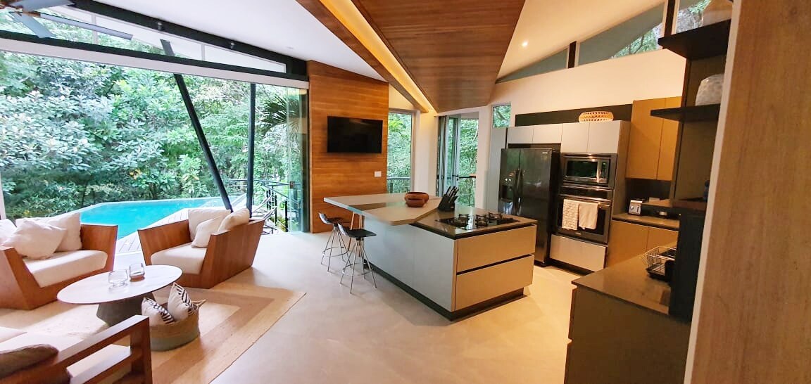 Acogedor departamento, totalmente renovado y amueblado, ubicado a solo 4 km de la hermosa playa Carrillo. Tiene una cocina equipada abierta a un amplio salón con aire acondicionado, un dormitorio y un baño. Desde el departamento, la terraza y la piscina infinita se disfruta de una vista impresionante de la selva y el océano. Es el lugar ideal para reponer energías con el canto de los pájaros, para contemplar la naturaleza costarricense, así como los monos y las mariposas.