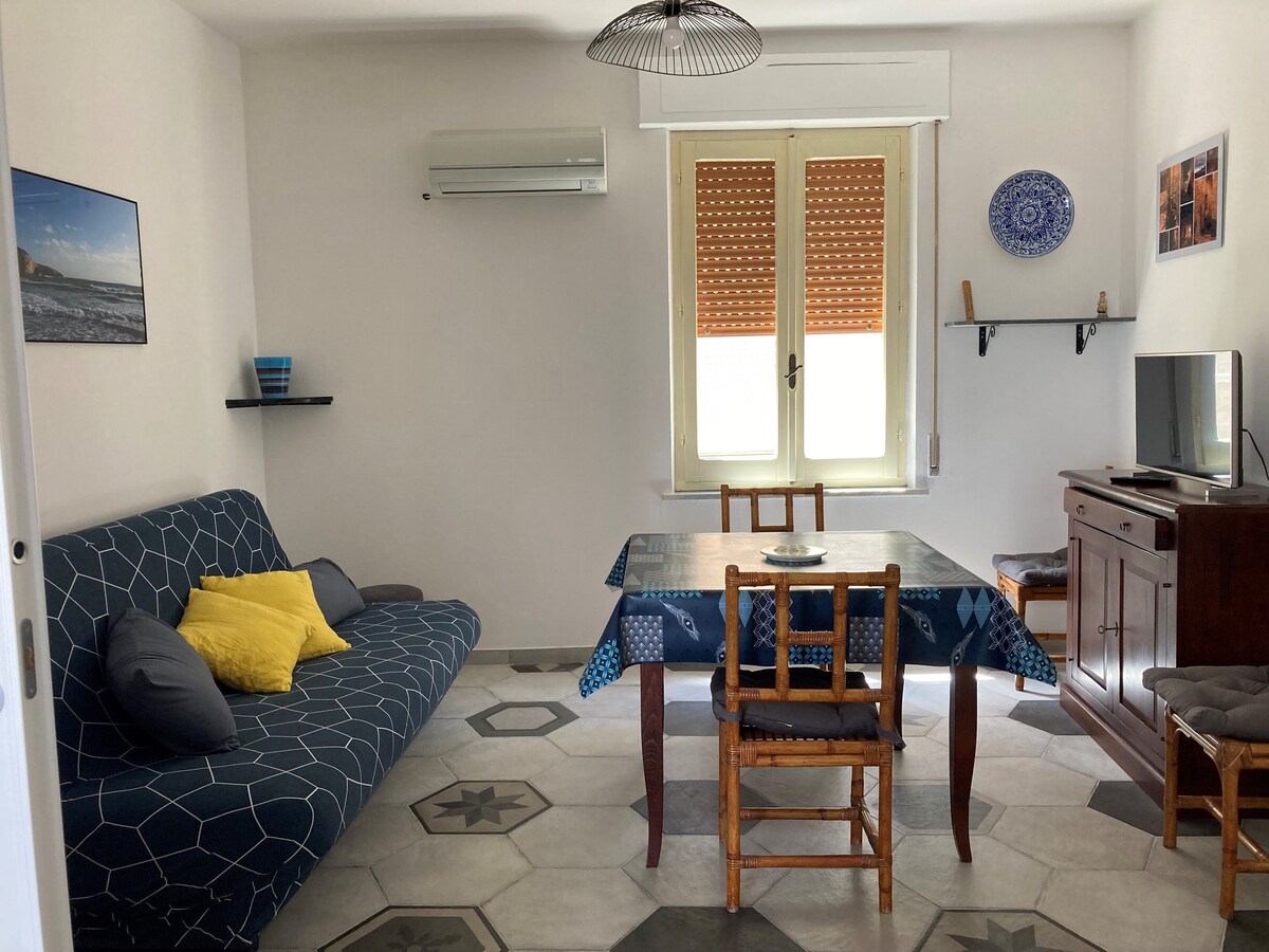 Casa Melograno is a three-story house with a charming small garden. The ground floor features a spacious kitchen, while the first floor includes a living room (which can also serve as a bedroom) and a bathroom. The bedroom on the second floor is accessible by a ladder. Casa Melograno has been tastefully renovated by us. Please note, it is not suitable for young children under 6 years old due to the lack of a banister on the stairs and the ladder leading to the top-floor bedroom.