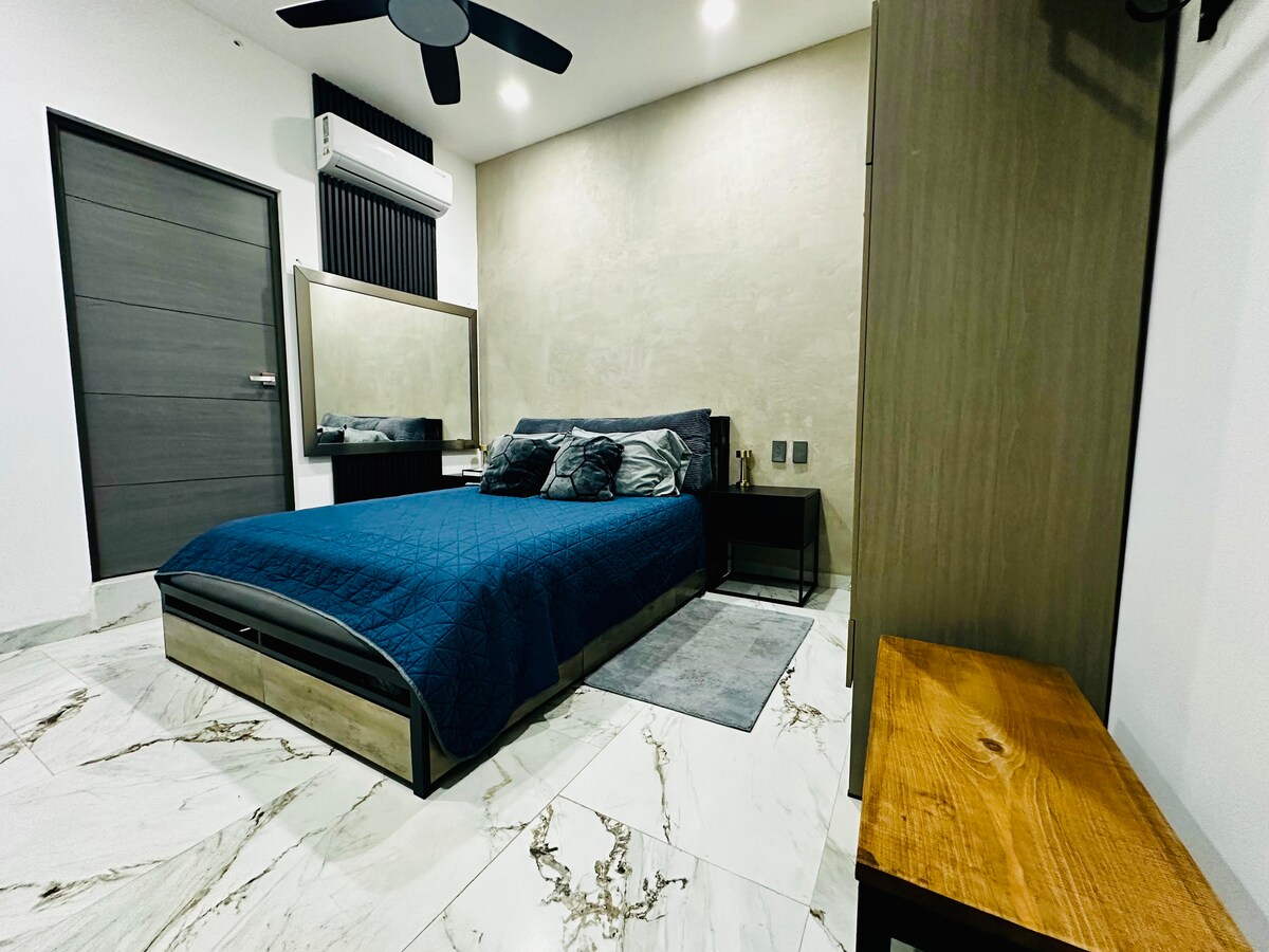 Toscana Loft, un espacio moderno y sofisticado diseñado para quienes buscan confort y exclusividad en Culiacán. contemporáneo con acabados de lujo: muros en tonos oscuros, texturas elegantes y mobiliario estilo boutique que evocan la experiencia. Disfruta de una recámara amplia y cómoda, sala moderna y cocina equipada, perfectos tanto para viajes de negocios como para estancias de placer. Cuenta con alberca y un ambiente exclusivo además te ofrece privacidad, estilo y ubicación estratégica