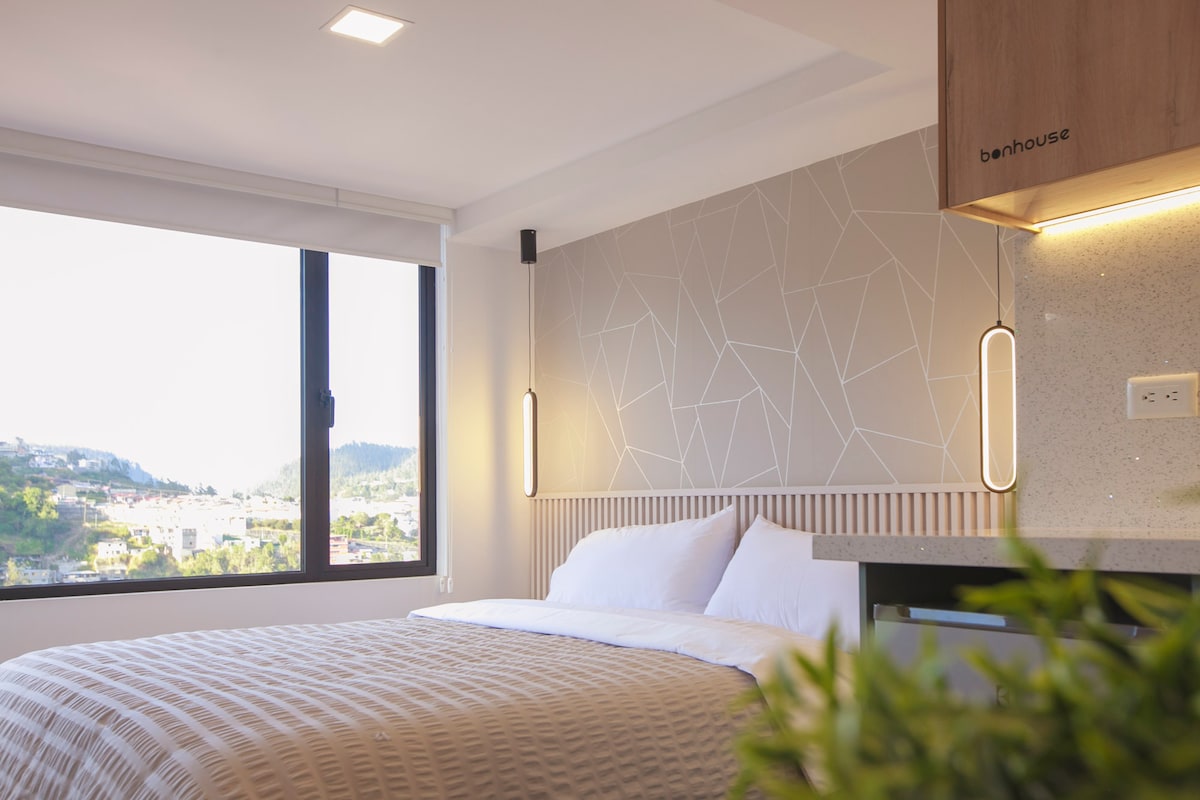 Minimalista y con todo lo necesario para una estadía larga o de pocos días. Pensada para que nuestros huéspedes tengan todo lo necesario para una estancia placentera. Cuenta con todo lo necesario para cocinar, o si se trata de entretenimiento, un monitor 4K en la sala y otro en la habitación. Silenciosa, acogedora, íntima y apacible. Su ubicación perfecta rodeada de universidades, hoteles, restaurantes, zonas turísticas, y la terraza con hermosa vista, la convierten en un destino en sí misma.