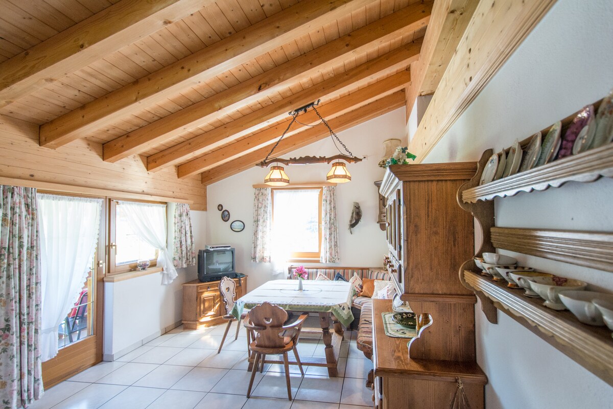 Bonito, acogedor y tranquilo apartamento de 2 habitaciones (máx. 4 personas), mucho encanto, en casa de 2 familias. Excelentes vistas, wifi, aparcamiento en frente de la casa, TV, pequeño equipo de música y lavadora. Una gran zona de deportes de invierno. Pista de esquí de fondo frente a la casa. Teleférico a 5 minutos en coche. En verano es ideal para practicar senderismo, ciclismo, golf, natación, tenis, escalada, etc. El apartamento es acogedor y está amueblado con cariño. No falta de nada para desconectar y pasar las vacaciones.