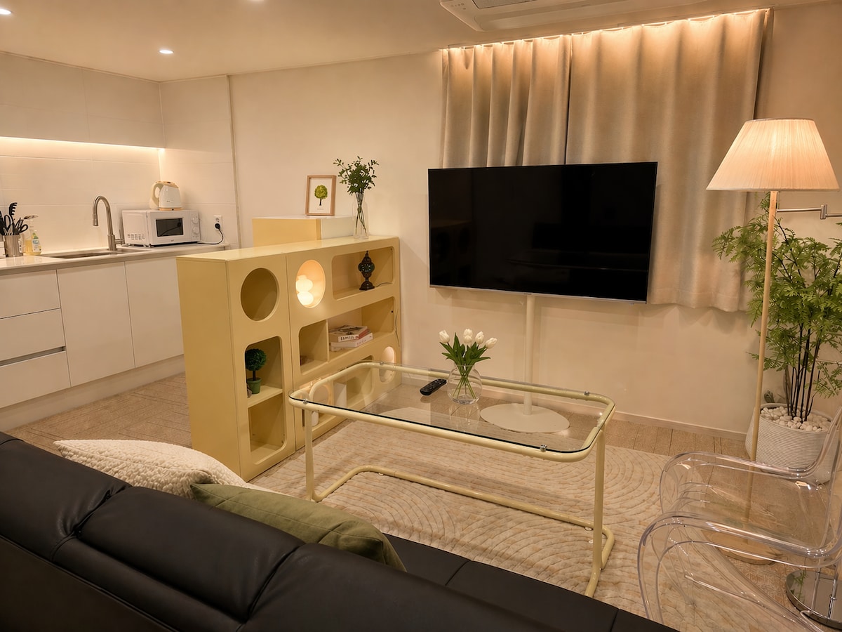 - Introduction to all room basic options - Free wifi 55-65-inch TV, 4 types OTT viewing, 7 star goose down pillow, hot water mat, organic amenities & cosmetics, styler, air purifier, Harman cardon Bluetooth speaker, hair straightener, hairbrush, electric coffee pot, mini refrigerator - a smoking cessation guide - Non-smoking / smoking in all rooms charged 200,000 won -Cancellation policy- See Airbnb Cancellation Policy