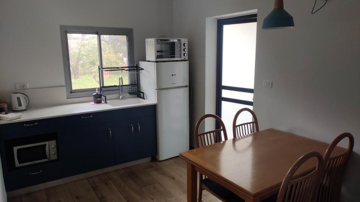 Our house (80 m²) is located in a quiet farming community in the Golan Heights. It is a single rustic house, with an apartment protected space (mmd). The house has two spacious bedrooms, a fully equipped kitchen, a bright living room and a large balcony with a view. It is suitable for couples or a family with up to two children. We provide all the necessary linen and towels, for your comfort and needs. We live a few minutes' walk away, so are available to help with any problem.