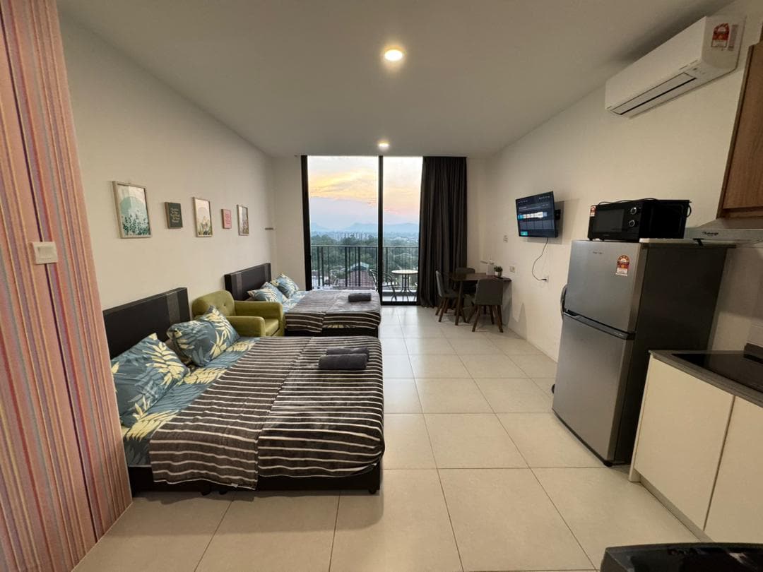Disfruta de una vida urbana con estilo en este estudio de diseño elegante, donde el confort moderno se combina con un ambiente sereno y el encanto de la ciudad. Situado en un barrio tranquilo pero vibrante, ofrece un refugio mientras está cerca del aeropuerto, los centros comerciales y el centro de la ciudad. Lugar ideal para relajarse y recargar energías, disfrutar de la vista panorámica de la ciudad de Kuching desde tu balcón privado. Este estudio con cocina tiene capacidad para 3 personas, perfecto para parejas, viajeros de negocios y familias. ★ Aparcamiento gratuito (sujeto a disponibilidad) y piscina