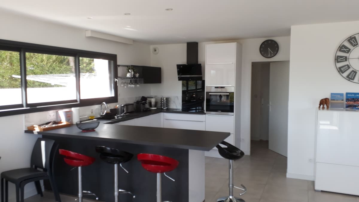 Casa reciente, clasificada con 3 estrellas turísticas, acceso rápido al mar (3 mm a pie) muy luminosa orientada más al sur con 3 terrazas amuebladas (comida, aperitivo y solárium con su jacuzzi adicional 30,00 € por noche) y gran sala de estar con su cocina abierta. Terreno cerrado que puede recibir a su mascota. las camas estarán hechas a su llegada y se le proporcionará una toalla. En invierno se proporciona leña para la estufa.