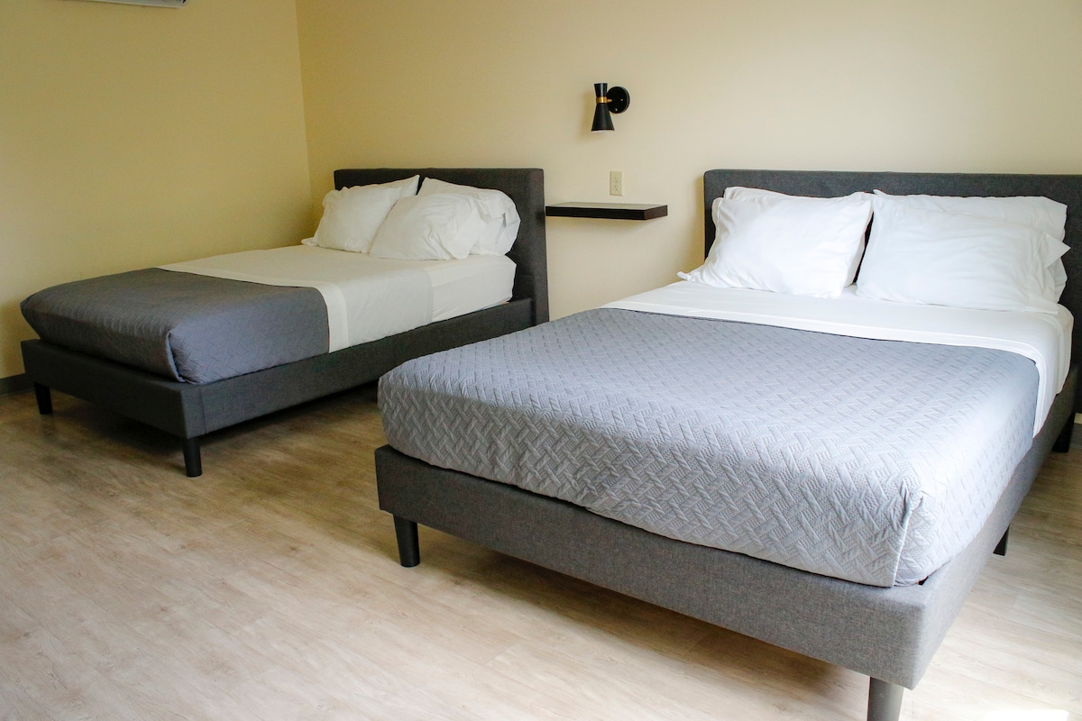 Esta habitación tiene dos camas tamaño queen, un baño privado con ducha y un espacio de trabajo. Electrodomésticos: nevera, microondas, cafetera (incluye: café molido, crema de café, tazas de café desechables, paquetes de azúcar, surtido de bolsitas de té).