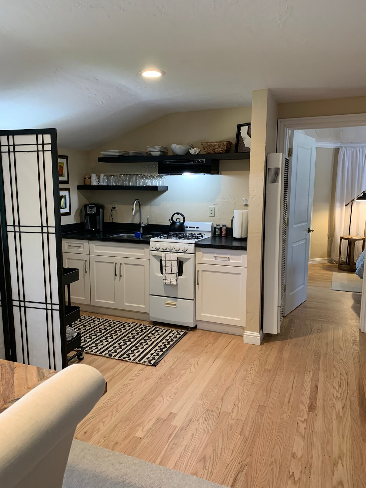 Gorgeous new guest house tucked away from it all and yet close to Downtown Walnut Creek! Walnut Creek is truly a gem of a city right out side San Francisco with cutting-edge restaurants and retail shopping. Staying in our guest house will give you a taste of the country in a organic setting of the yard. This open floor plan is bright and airy, spacious kitchen with large peninsula view for eating and socializing. Beautiful front porch perfect for warm summer nights, with views of the hills.
