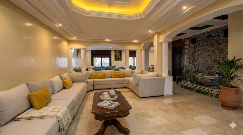 Descubre el lujo en el barrio de las princesas en Casablanca. Nuestro elegante apartamento combina comodidades modernas y una decoración elegante para una estadía inolvidable. Con una ubicación ideal: cerca del estadio 🏟 mohamed 5 y de Casablanca finance city. el apartamento está rodeado de los grandes centros comerciales de las tiendas de alta gama de restaurantes gourmet y grandes superficies. el apartamento contiene muebles de alta gama y equipamientos esenciales y modernos.