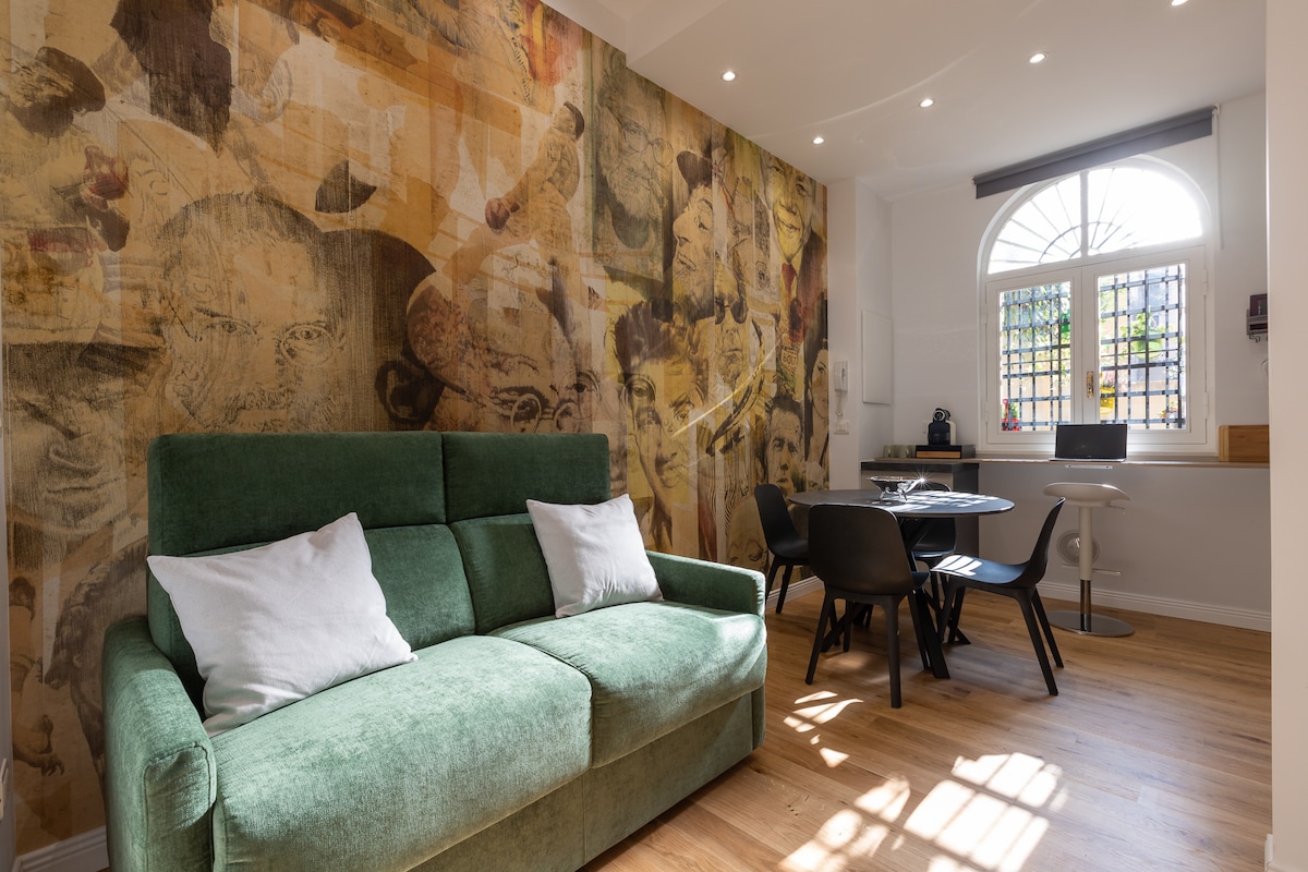 Despierta con la luz de la mañana en un edificio histórico en Piazza Giovine Italia. Los techos altos crean una sensación de espacio, mientras que el salón, con paneles de madera y un balcón panorámico, te invita a relajarte. La moderna cocina y el comedor son perfectos para cenas íntimas, mientras que el dormitorio y el espacioso baño ofrecen un refugio tranquilo. Un oasis encantador donde la historia y la comodidad se encuentran, para una estancia inolvidable.