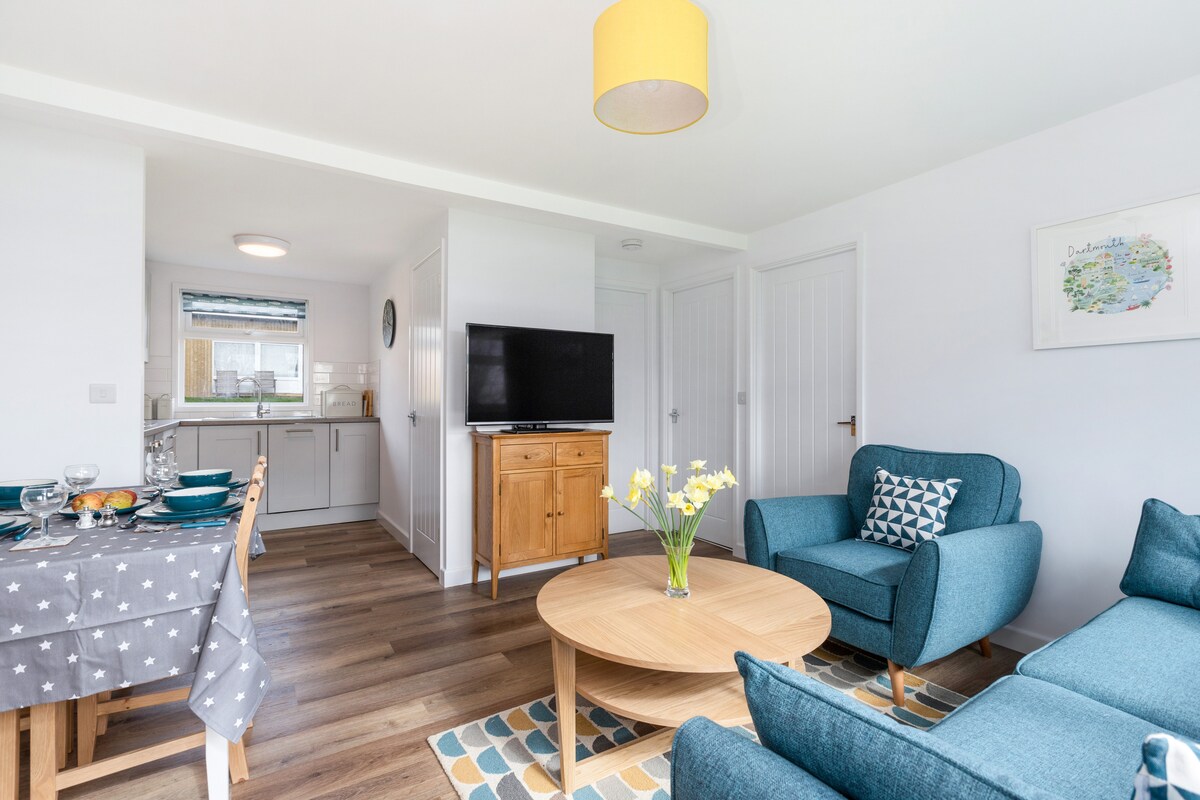 - Chalet bungalow independiente en un tranquilo parque de vacaciones a las afueras de Dartmouth con vistas a la campiña circundante. - Dormitorio doble y con dos camas individuales. - Cocina con mesa de comedor, lavadora, nevera con congelador, microondas y utensilios. - Sala de estar con TV, 2 sofás, puertas de patio a zona de césped con vistas. - Baño con bañera, ducha eléctrica, lavabo, toallero eléctrico, inodoro y calefacción por suelo radiante si es necesario. - Electricidad con contador de monedas de 1 libra. - El césped compartido rodea el chalet, con asientos y mesas en la parte delantera y trasera.