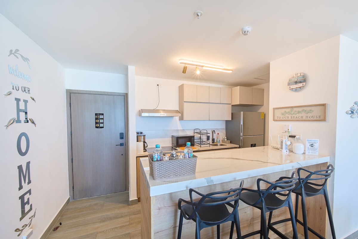 Bienvenido a tu Suite de ensueño con Vista al Mar! Disfruta la puesta del Sol, la brisa del océano y la comodidad de nuestro alojamiento totalmente equipado, con aires acondicionados e Internet de alta velocidad. Ubicado estratégicamente dentro de una Urbanización privada con acceso a Piscinas, Jacuzzi, Parque Infantil, Gimnasio, Baños, Duchas, Seguridad 24/7, etc. Descubre el verdadero significado del relax y la comodidad en tu próxima escapada con nosotros. Reserva ahora y vive la experiencia!
