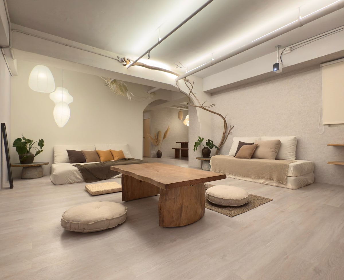 ・寬敞大空間・可容納18人 極少數位於台北市中心的大坪數房源,適合同學會、工作團隊、家族旅行等多人入住。 ・侘寂風室內設計 簡約木質、柔光、自然留白,營造靜謐放鬆的城市療癒感。 ・舒適寬敞臥室 寬敞格局、透亮採光、沉穩色系,為旅途注入一夜安穩。 ・高品質投影設備 躺在床上就能享受劇院感觀影,非常適合團體追劇、電影夜。 ・獨立冷暖空調 一年四季都能保持最舒適的溫度。 ・衛浴設備 乾濕分離浴室 × 2(雙衛設計) 不必排隊等洗澡,多人入住也能自在從容。 ・洗烘脫衣機(All-in-one) 長住更便利,旅途中保持乾淨整潔。 ・設有垃圾回收區 空間保持整潔,使用起來更舒服。 ・超強地理位置(走路就到) 機場捷運出口 ▶ 1 分鐘 一出捷運就能輕鬆抵達,拖行李超輕鬆。 ・台北車站 步行距離內,多線交通超方便。 ・寧夏夜市、美食街 步行就到,夜晚不用坐車就能吃遍小吃。 ・迪化街、大稻埕商圈 歷史老城區散步可達,咖啡廳、選物店、老街文化一次滿足。