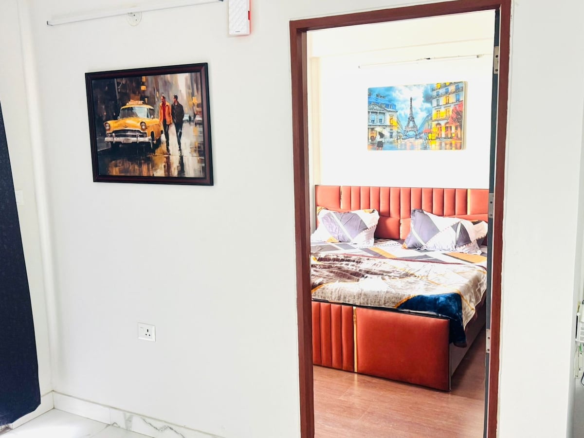 El hogar está en cualquier lugar contigo: una escapada soleada sobre Gurgaon Algunos lugares no solo existen: respiran, susurran, te invitan a reducir la velocidad. Bienvenido a una casa de 12 pisos sobre el mundo, donde el tiempo se derrite en puestas de sol doradas y las únicas notificaciones provienen de los tonos cambiantes del cielo. Un lugar donde finalmente puedes **desconectar, sintonizar y saborear el arte de estar presente. *No se proporciona la tarjeta de acceso al ascensor. Los huéspedes deben hacer una pausa en el cuarto piso para acceder a los pisos.