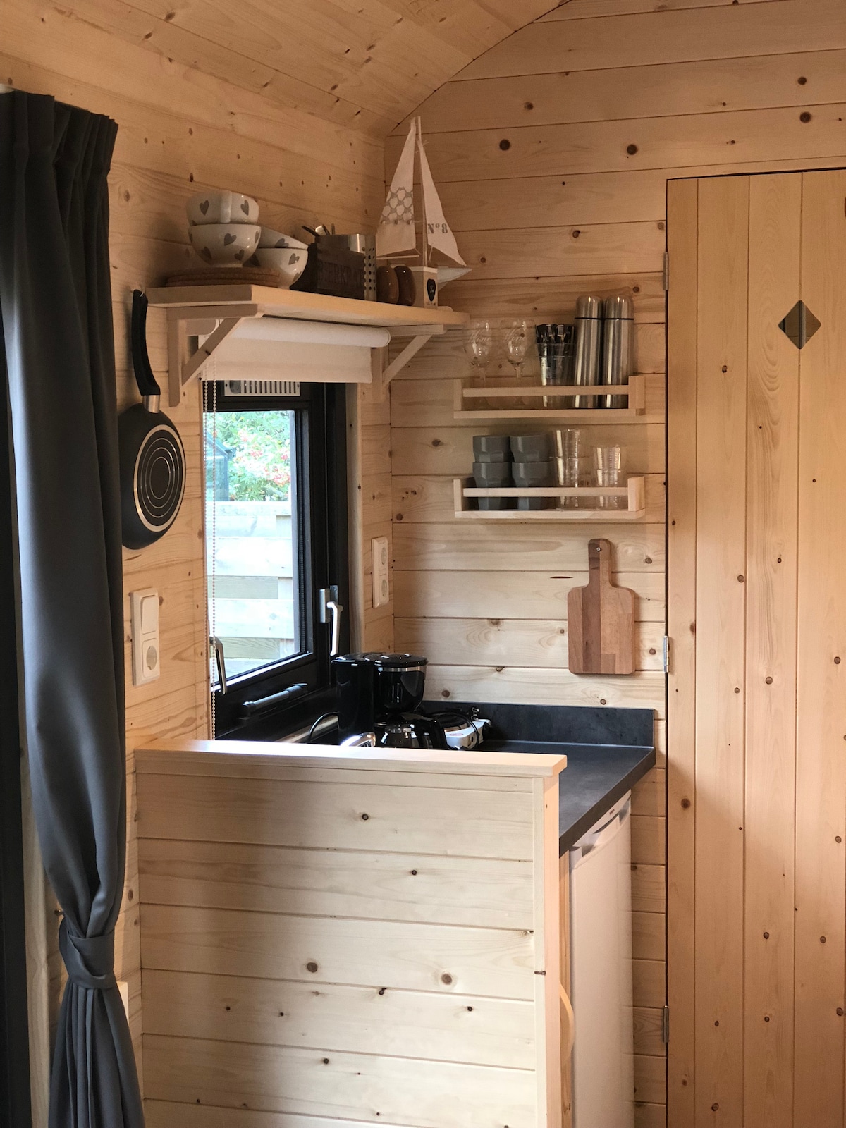 Unique accommodation in the garden of an old church. The Tiny house is small in size but large in living space! Relax on the terrace or in the forest garden. Dream away in the hot tub (optional €45 first day/€25 next days, will be stoked for you) under the stars and enjoy the silence. Wake up with sunrise and a view over the meadows. (Breakfast optional €15,- pp) Your booking is also a contribution to the renovation & conversion of this beautiful monument. Thank you!
