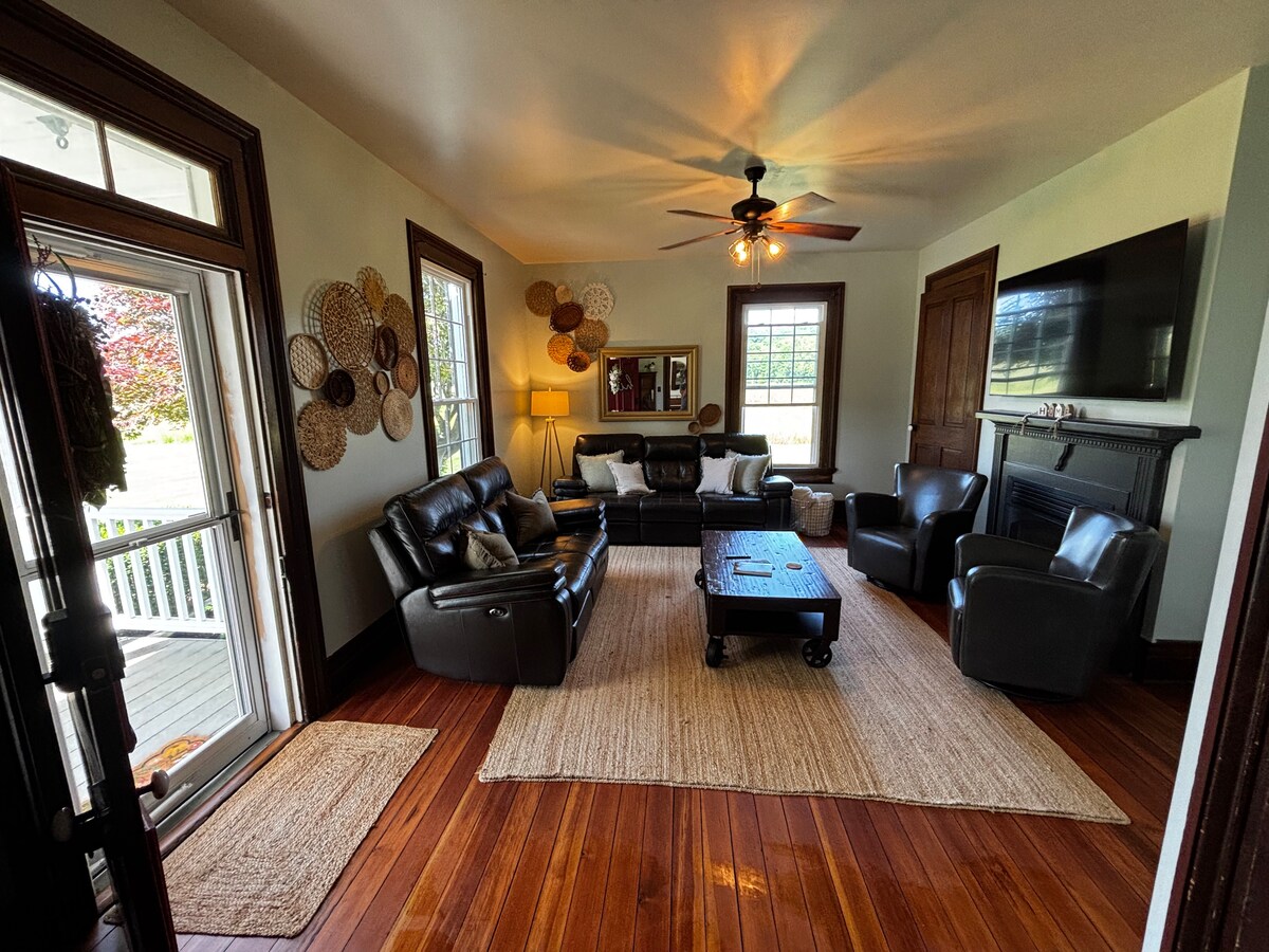 Esta casa histórica se encuentra en el pequeño pueblo de Petersburg, Kentucky, a solo cinco millas del Museo de la Creación. Es un lugar fantástico para disfrutar del aire libre con un patio de medio acre y un patio muy agradable y un porche delantero. Esta casa cuenta con amplias habitaciones ideales para familias y entretenimiento. La sala de estar y tres de los dormitorios tienen un televisor de pantalla plana y un reproductor de DVD con Netflix disponible. También hay wifi gratuito y una cocina con todos los servicios de casa.