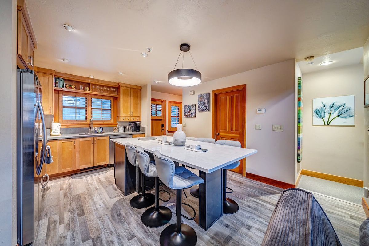 ¡La mejor ubicación de Park City! Después de un día en los senderos, este espacioso departamento remodelado ofrece un refugio perfecto. Prepare una comida gourmet en la cocina totalmente equipada, sírvase un cóctel, contemple las vistas a la montaña desde su terraza privada o relájese en su propia bañera de hidromasaje privada y apartada. Ambos dormitorios cuentan con sábanas y colchones de primera calidad y su propia entrada al patio de la bañera de hidromasaje. *A 5 minutos a pie de Main Street * Estacionamiento subterráneo reservado *Recién remodelada *25 % de descuento en alquiler de esquís
