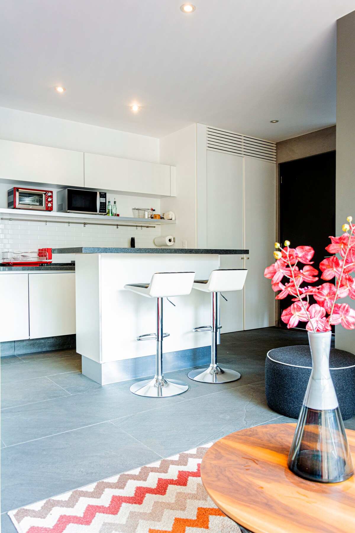 Estilo industrial minimalista, muy comodo y acogedor. Cocina totalmente equipada Barra Desayunadora modular con 4 sillas Lavasecadora Baño en inmaculadas condiciones Colchon y almohadas con Memory Foam Sofa Cama Closet completo WiFi de alta velocidad Escritorio para trabajar Smart TV 4K