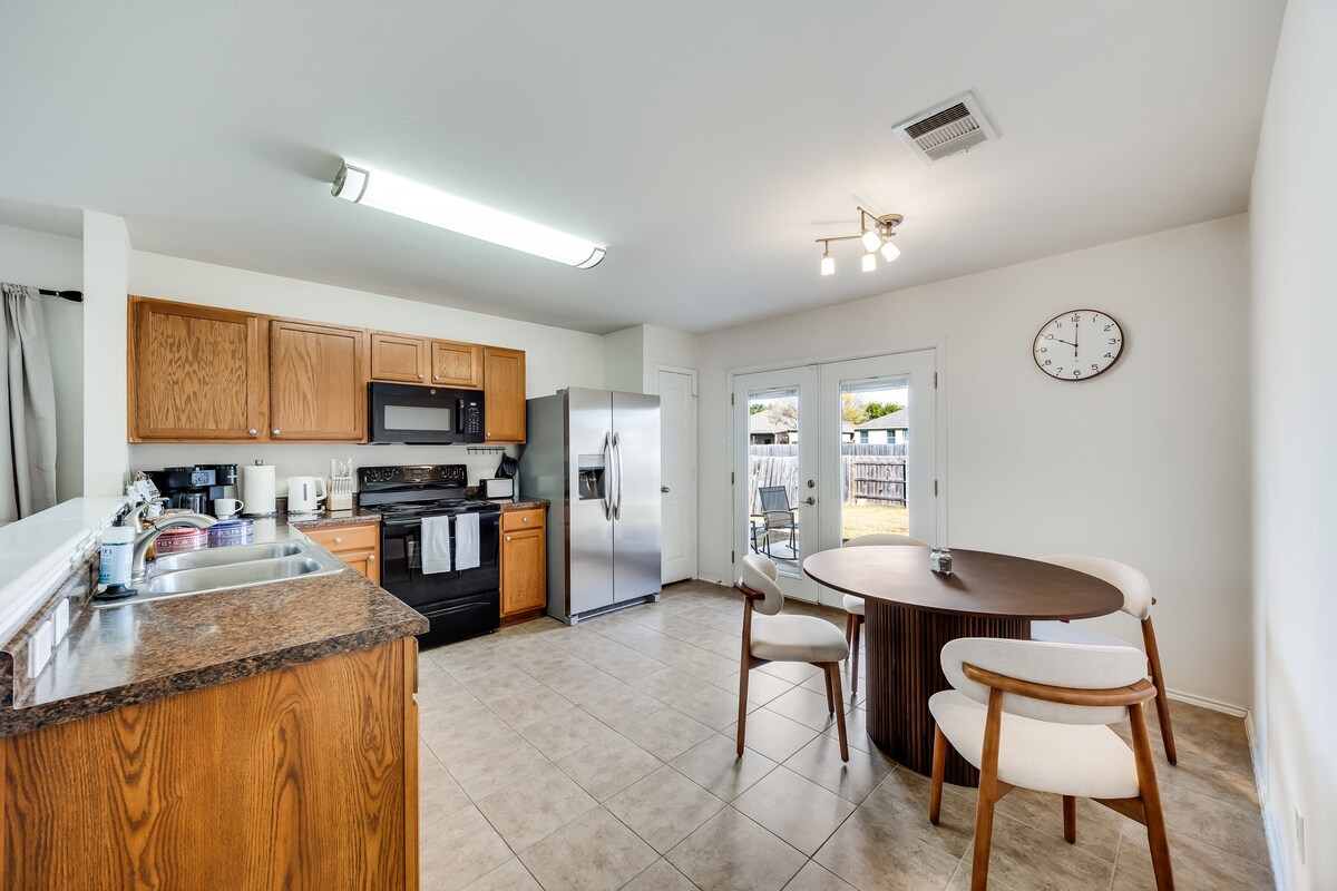 Ve a ver un partido en el Express Dell Diamond o date un chapuzón en el parque acuático Kalahari Resorts, ubicado a 1 minuto de esta elegante casa de Round Rock. Crea comidas gourmet en la hermosa cocina que cuenta con una gran isla de granito. Disfruta de un picnic y fuegos artificiales (durante la temporada de béisbol y el 4 de julio) en el patio con una parrilla perfecta para una barbacoa de Texas. Casa completa (aprox. 1588 pies cuadrados) con 3 dormitorios, 2 baños, 1 sala de estar, 1 comedor y una hermosa cocina espaciosa + sala de juegos en el garaje. Disfruta del patio trasero equipado con parrilla y mesa de pícnic al aire libre. Tienes acceso a toda la casa, incluido el garaje (sala de juegos convertida). También tienes acceso al patio delantero y trasero. Acceso al hogar: entrada sin llave. Si tienes alguna pregunta, no dudes en llamar o enviar un mensaje de texto. La casa está enfrente del Dell Diamond, el parque acuático Kalahari Resort y varias tiendas de comestibles. Sal a correr por uno de los senderos para correr cercanos en Old Settlers Park. El lago Travis y la ciudad de Austin están a poca distancia en coche. Magnolia Market, Magnolia Table y Press Coffee Co (negocios de Chip y Joanna Gains) están a solo una hora de distancia. En coche. Por favor, aparca en la entrada. Por favor, no aparques en la acera. Manual de la casa disponible en la mesa de la entrada para ayudarte a navegar por la casa :)
