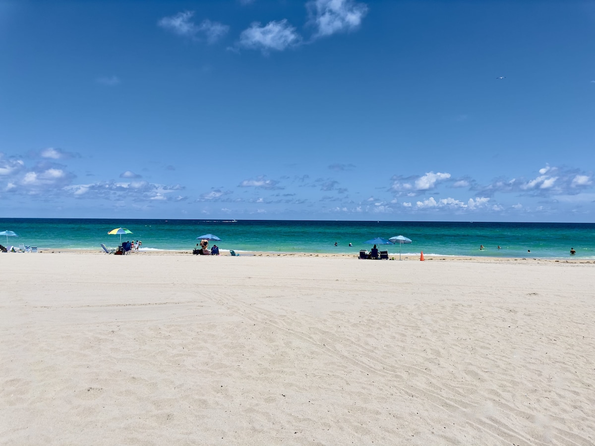 ¡Vistas al mar / playa desde la cama principal y el balcón interior! La playa está en las instalaciones - Acceso gratuito a la playa - ¡Sin tarifa de resort! Totalmente remodelado NOTA: TENEMOS 3 UNIDADES. PREGUNTA SI ESTÁN RESERVADAS. Capacidad para 9 personas, 2 dormitorios grandes y acogedores condominio - Piscina grande. Ubicado en las instalaciones: spa-cafetería-yoga-bar tiki-bar deportivo-happy hour-DJ-alquiler de motos acuáticas (al lado) y más... Comedor al aire libre en la playa-restaurante interior con entretenimiento ¡Traslados gratuitos a restaurantes locales! A 2 manzanas de Dunkin-Liquor-Publix -pizza- y más