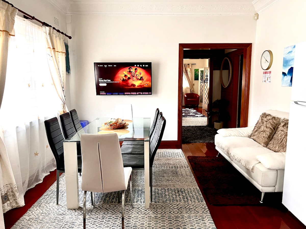 Relax in a spacious, charming, one &half level, 2livingR,3BathR,4BR, air-conditioned(cooling&heating), 3TV(Netflix)&sun-filled garden. Enjoy a barbecue on spacious private terrace while enjoying the bush view. Stunning bush view destress &relaxing downstair living room. 5min walk to train station, 1min drive to Eastwood eateries, 2min drive to West Ryde shopping Centre(Woolworths&Coles). Comfort&easy trips to main attractions like Opera House, Olympic Park&Bondi. About 30 min drive to Sydney CBD