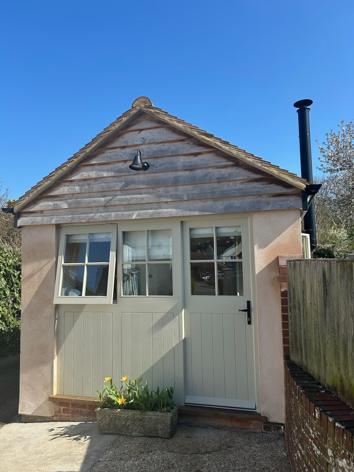 Situado en el encantador pueblo de Hambledon, dentro del Parque Nacional South Downs, el anexo tiene una cocina totalmente equipada, una acogedora sala de estar con estufa de leña y un dormitorio doble con puertas de patio que conducen a su jardín cerrado. Hay senderos pintorescos a la vuelta de la esquina y está a poca distancia a pie del Old Forge Tea Room, un pub local y una tienda bien surtida del pueblo. Todavía dentro del pueblo, tómate el tiempo para visitar el viñedo comercial más antiguo de Inglaterra, con su galardonado vino espumoso y restaurante.