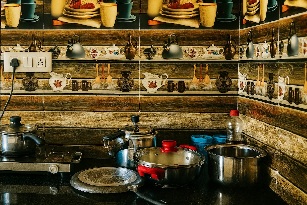 Forget your worries in this spacious and serene space. If you love peace and family/ personal time This is your place Temple is only 1.8km far Cook available 24/7 Erikshaw available at door step 24/7 cab available Enjoy the outdoor space with family we will help you with grilling and bonfire We have more flat in same property if you are coming in bulk we will give you more offers You can book entire place for house party or any events