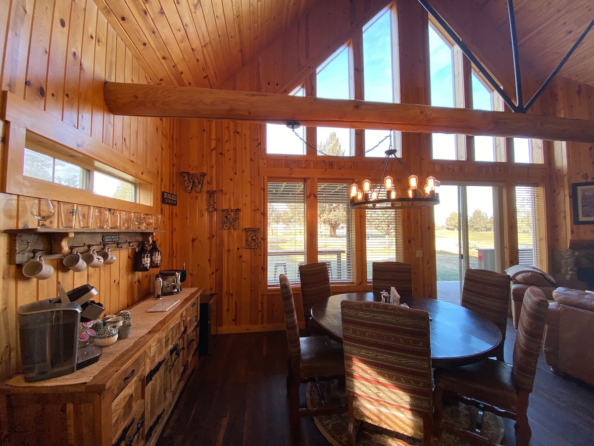 Este chalet de 3 dormitorios y 2 baños totalmente amueblado se encuentra en la caja del tee 15 del campo de golf Eagle Crest Ridge, que limita con tierras de la BLM y es uno de los entornos más privados de Eagle Crest. Disfruta del encanto de los detalles de pino nudoso y troncos, una suite principal con una cama tamaño king de troncos y bañera de hidromasaje, y una gran terraza que da al campo de golf que tiene una pérgola, iluminación y un sofá de gran tamaño con bar.