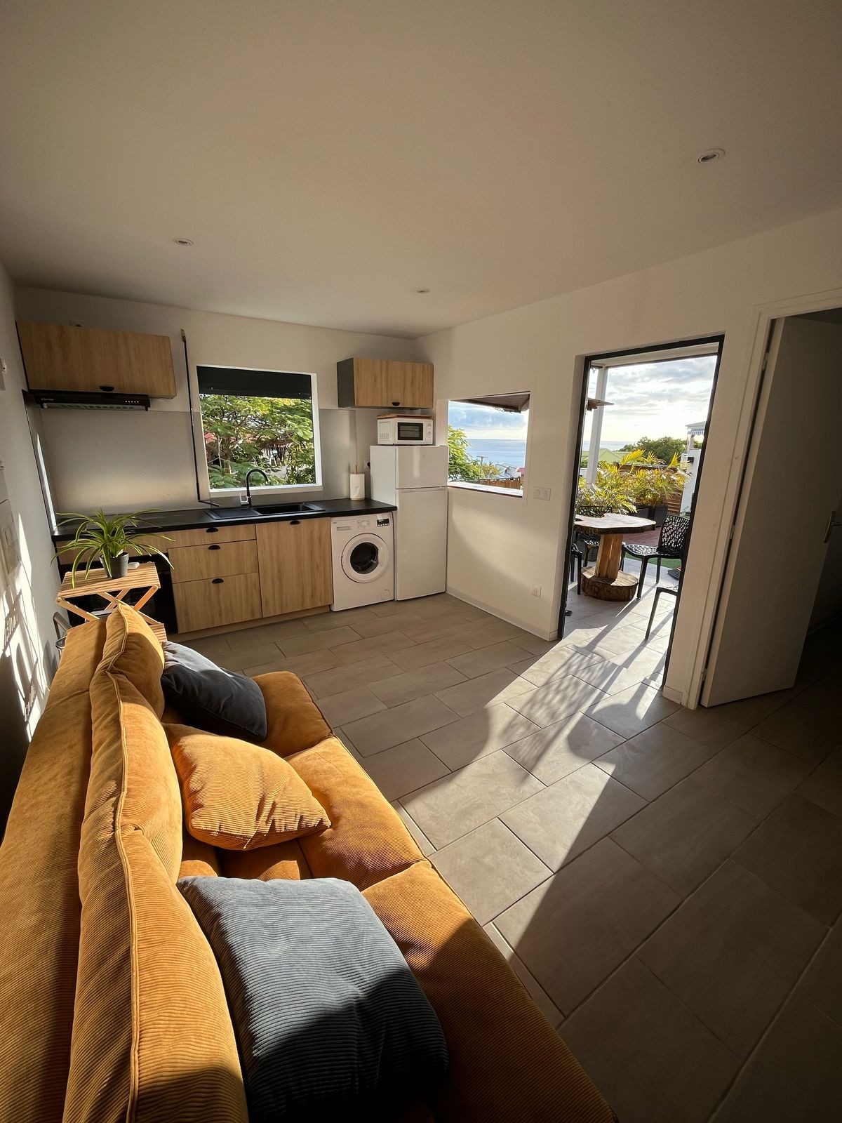 Bungalow de madera con vistas al mar, enclavado en una zona verde, entre el bosque tropical y el mar Caribe. Situado a pocos minutos de 3 hermosas playas, consta de un jardín privado, aparcamiento, terraza, salón cocina (con TV y wifi) y arriba, un dormitorio principal con aire acondicionado, (cama de 160), con baño. A su llegada, podrá disfrutar de su plantador de bienvenida frente al mar, antes de salir a visitar nuestra increíble isla... Hasta pronto en el paraíso...