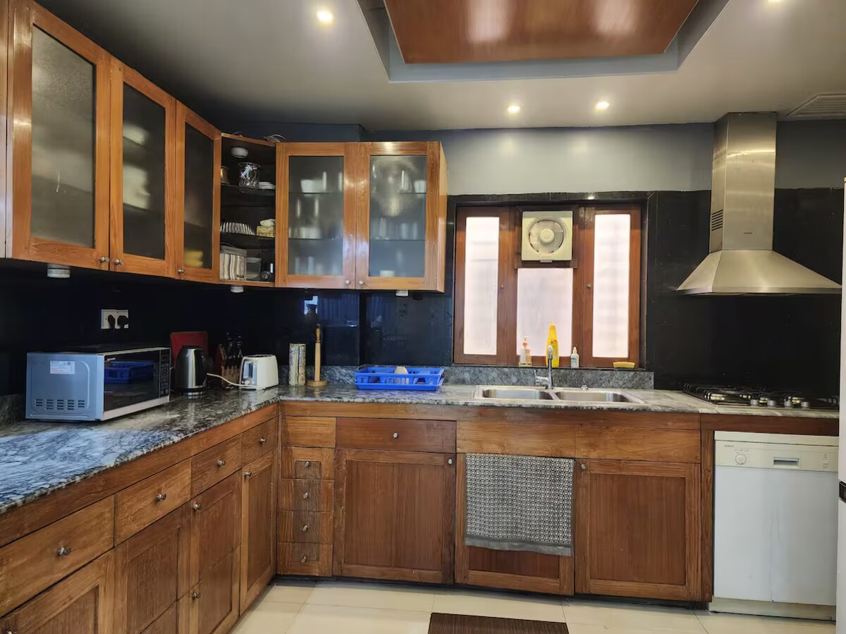 Este espacioso apartamento totalmente amueblado es perfecto para viajeros de negocios, personas, grupos y familias. El apartamento de la 7ª planta tiene 4 balcones, vistas despejadas, un plano abierto y comodidades modernas. A 20 minutos del aeropuerto internacional de Dacca, Banani es una zona exclusiva, segura y principalmente residencial con acceso a restaurantes, parques y mercados locales. Wifi de alta velocidad, oficina, Terraza en la azotea, Gimnasio Cochera, Cocina equipada Aire acondicionado, Chef/criada a petición, Generador, Cafetería abierta 24/7 cerca