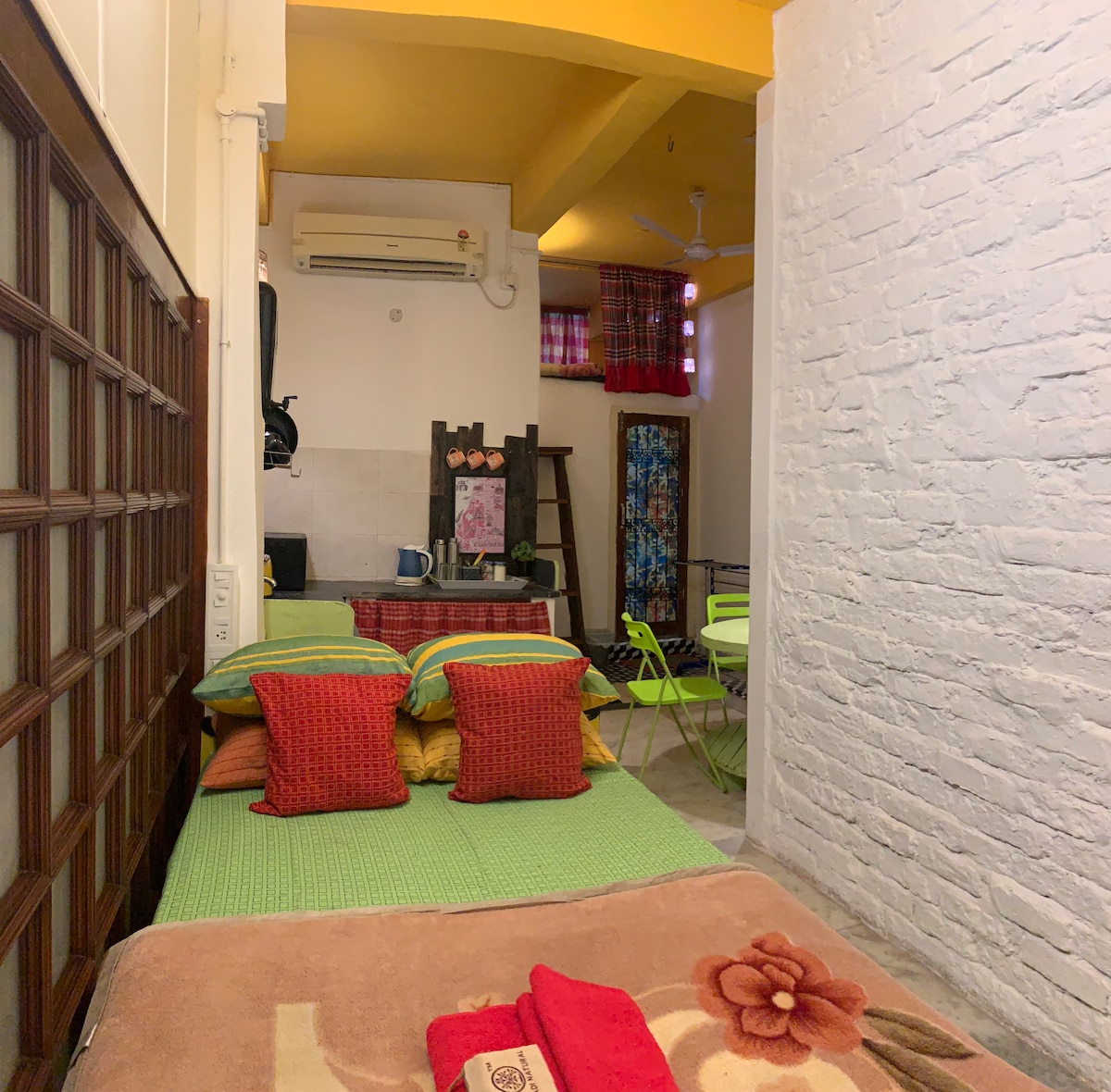 When in Kolkata, we are your home away from home at Salt Lake City! When you step into our home, you enter the Incredible India story and our age-old philosophy of hospitality - "Vasudhaiva Kutumbakam" which means the entire world is one family. Soothingly done up with a mix of handcrafted decor pieces, hand-painted folk art by artists from rural India, antique style furniture, soft and warm lighting, a large patio or balcony - it's a perfect comfortable couple-friendly private home-stay.