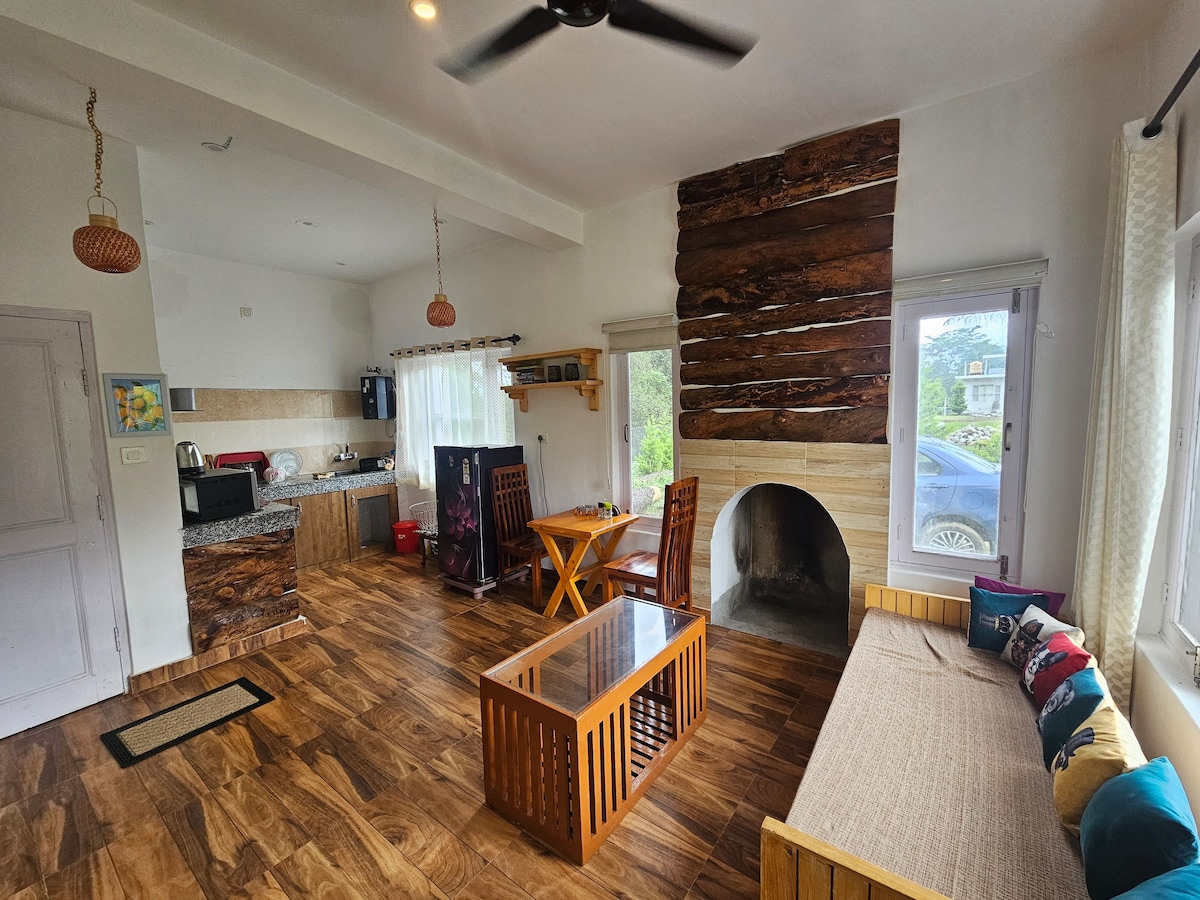 An independent 1 BHK property which is surrounded by Devdar Trees. Interiors have been done with pure Devdar wood. It has an indoor fire place and all amenities for kitchen - Microwave, Fridge, RO Water Purifier, Electric Kettle, Toaster, Cutlery, Gas, Kitchen Utensils, Mixer Grinder. Geyser for bathing , smart tv, WIFI and electricity Backup is there. No cleaning fee. check in is flexible depending upon whether he have check out on same day Bonfire is chargeable