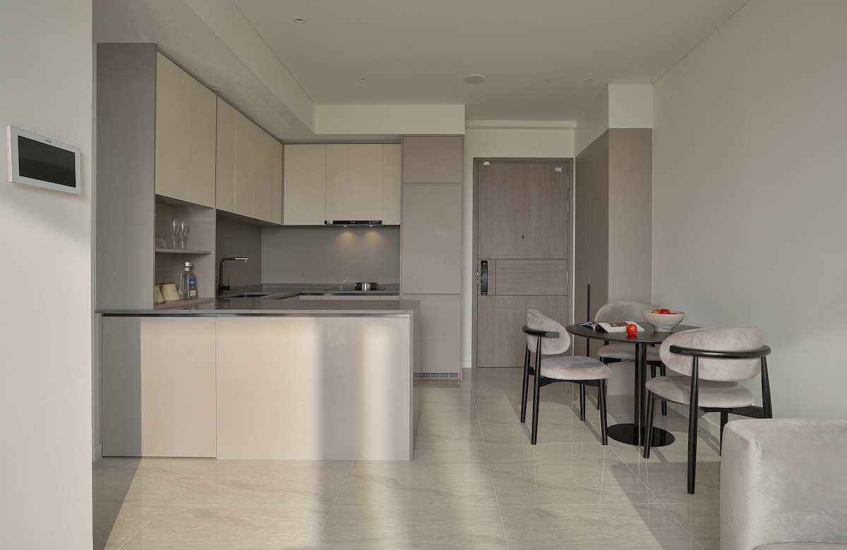 El apartamento está bellamente diseñado en estilo Wabi Sabi, ubicado en el edificio D1Mension Residences, centro del Distrito 1, estilo artístico, instalaciones de resort de alto nivel, piscina especial de alta calidad, baño de hidromasaje, baño turco, gimnasio, sala de reuniones, sala de trabajo privada, acuario de jardín, piza 4' justo en el vestíbulo, zona de barbacoa en el jardín, zona de juegos infantiles, gran salón, todas las ventanas de los dormitorios y balcones son espaciosos, único, lujoso y elegante apartamento.