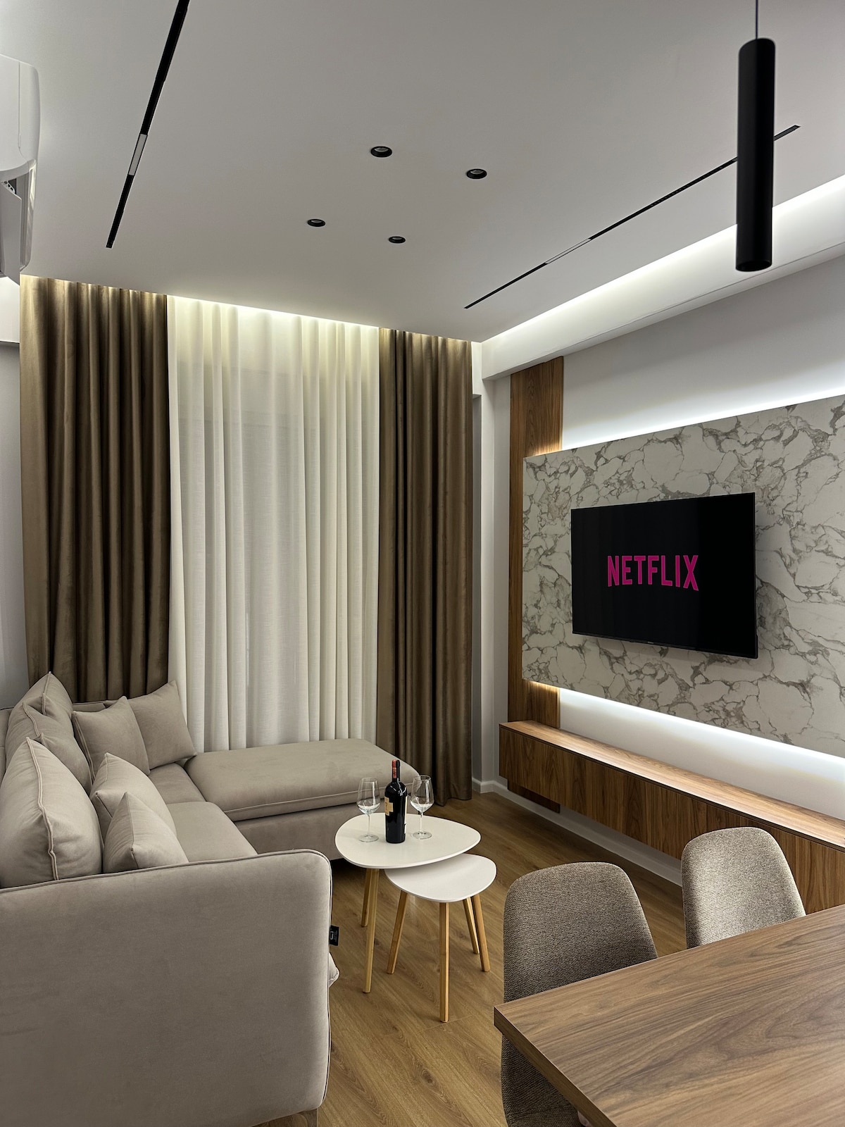 Disfruta de una estancia de lujo en este espacioso apartamento ubicado en uno de los barrios más seguros de Tirana. Situado en un edificio nuevo con muebles modernos y una limpieza excepcional, Elysium Apartment combina comodidad y estilo. Benefíciate de un aparcamiento privado en el seguro garaje subterráneo, a solo 6 minutos del teleférico «Dajti Express» y a 10 minutos de la icónica «Plaza Skanderbeg». Ya sea que estés de visita por placer o por negocios, esta ubicación ofrece fácil acceso a lo mejor de Tirana.