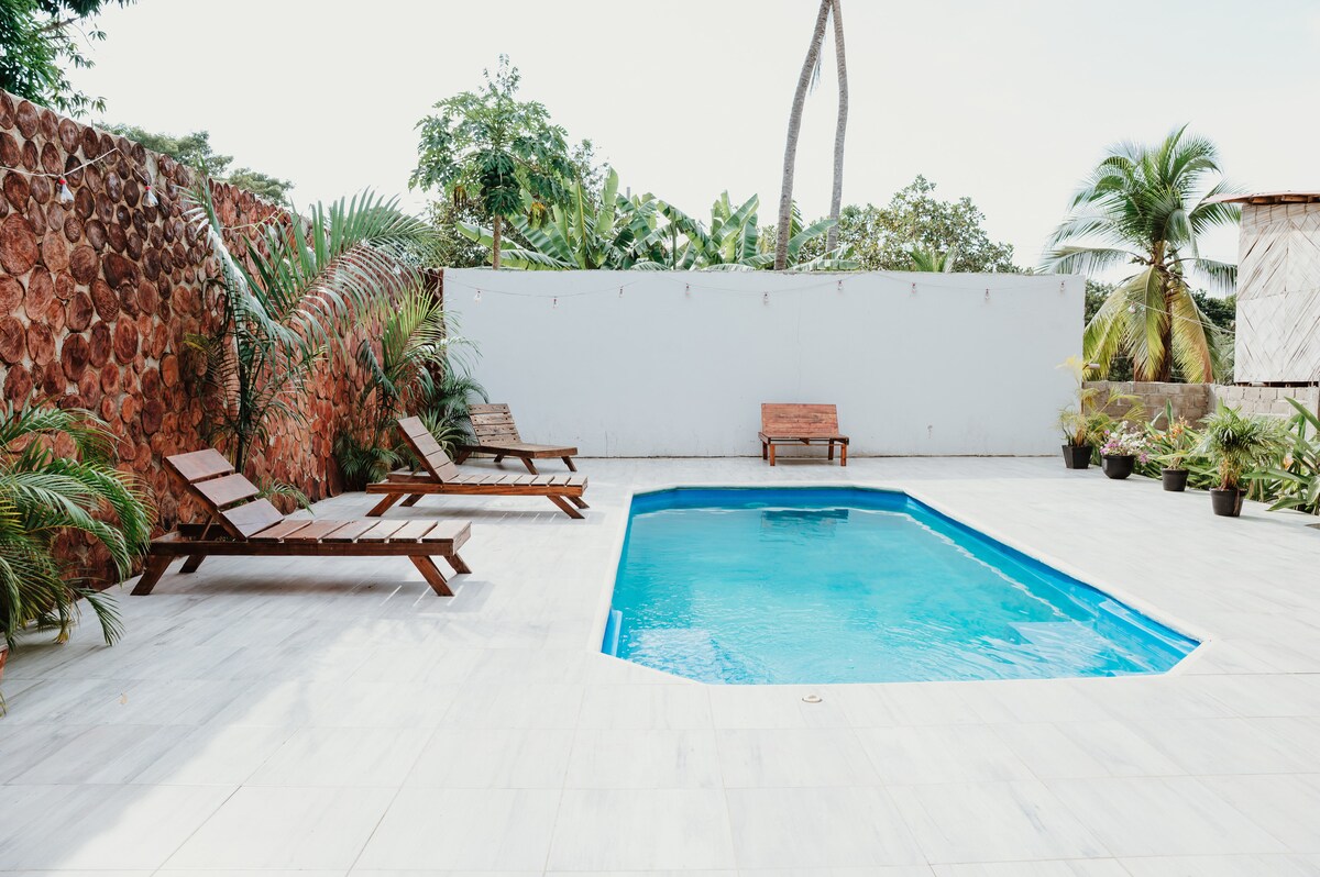 Este es un dormitorio privado con cama doble y baño en el segundo nivel de un edificio de 2 pisos con terraza en la azotea. El acceso a la azotea y a la habitación comparten una escalera de caracol. La habitación disfruta de un baño privado y dos balcones, uno con vistas a los jardines del patio interior y la piscina con una mesa y una silla, el otro balcón tiene vistas a la parte delantera de la propiedad con una hamaca para descansar. Ambos balcones están cubiertos. Consulta la descripción de la propiedad para obtener más detalles. ¡Esperamos tu visita!