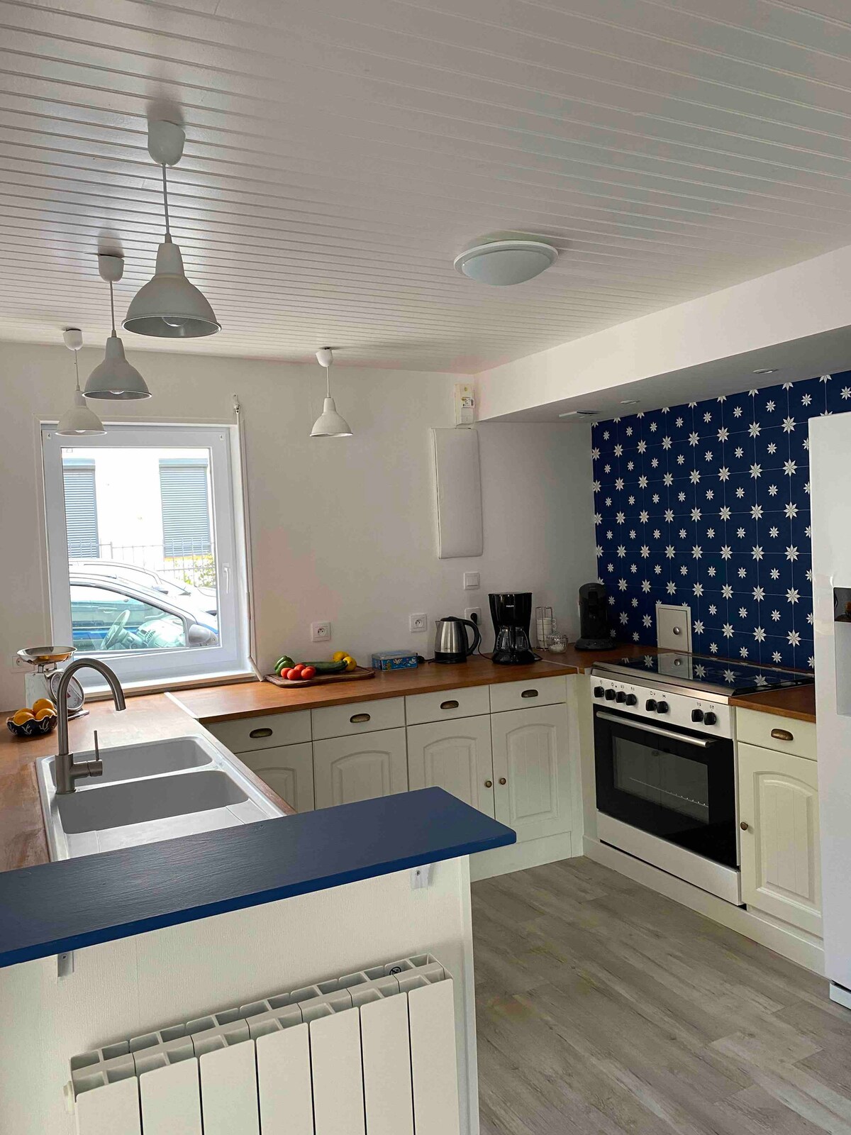 La bonita casa de la esquina (80 m2), situada a 200 metros del puerto deportivo, en una calle tranquila muy cerca del centro. A su disposición en la planta baja: - una sala de estar - una cocina amueblada y equipada - el primer dormitorio con cama de 140 - un cuarto de baño con inodoro - un lavadero A su disposición arriba: - el segundo dormitorio con cama de 160, lavabo y ducha privada - La tercera cama en el rellano, cama de 140 y un lavabo En el exterior: Un patio con garaje y terraza cubierta