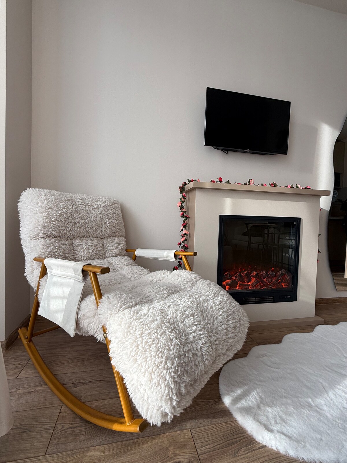 Stylish Pinterest-Inspired Studio – Perfect for 2 Guests Chic studio apartment with modern Pinterest-inspired design, ideal for 2 guests, plus a fold-out bed for a 3rd. Features hot & cold water, heating, Wi-Fi, TV, washing machine, and fireplace. Enjoy building amenities: pool, sauna, and hammam (extra fee). Cozy, clean, and ready for short stays, vacations, or business trips.